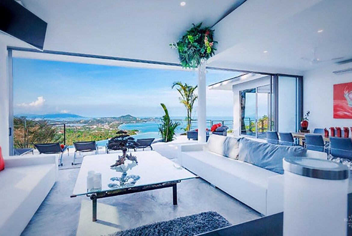 No matter where you are in the living area, you have the most perfect views through the floor-to-ceiling glass sliding doors that lead onto the pool terrace. Stepping onto the terrace has a huge âWowâ factor. The elevated views are spectacular and you can easily see the tiny island of Koh Matlam in Chaweng bay directly in front of you with Chaweng Lake just to the left. Beyond the lake are the small islets of Koh Som and the towering hills of Koh Phangan in the distance, the latter famous for its âFull Moon Partiesâ. Itâs a wonders sight you will never grow tired of, nor of watching the ocean change colour in the morning as the sun arcs across the sky bathing the terrace in sunshine from dawn until dusk.