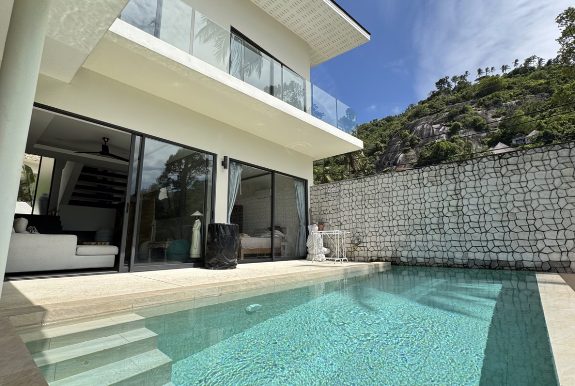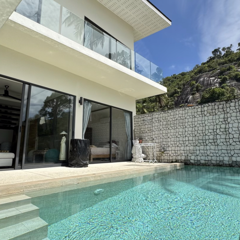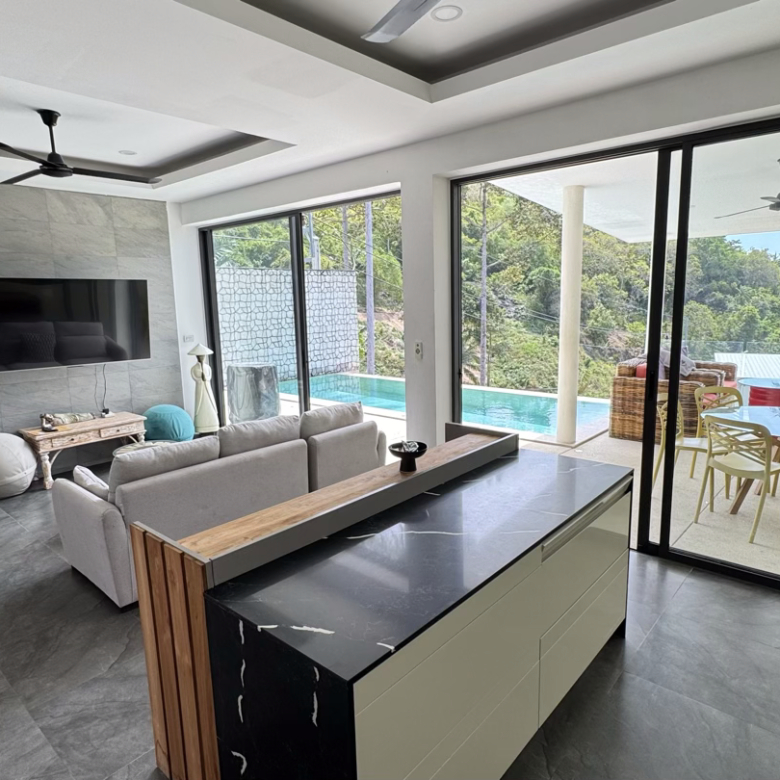 Perched high in the tranquil hills of Maret, this brand-new villa offers the perfect fusion of contemporary architecture and tropical island living. With breathtaking panoramic views over the Gulf of Thailand, the property provides a private sanctuary where sea breezes, modern comfort, and timeless elegance converge.