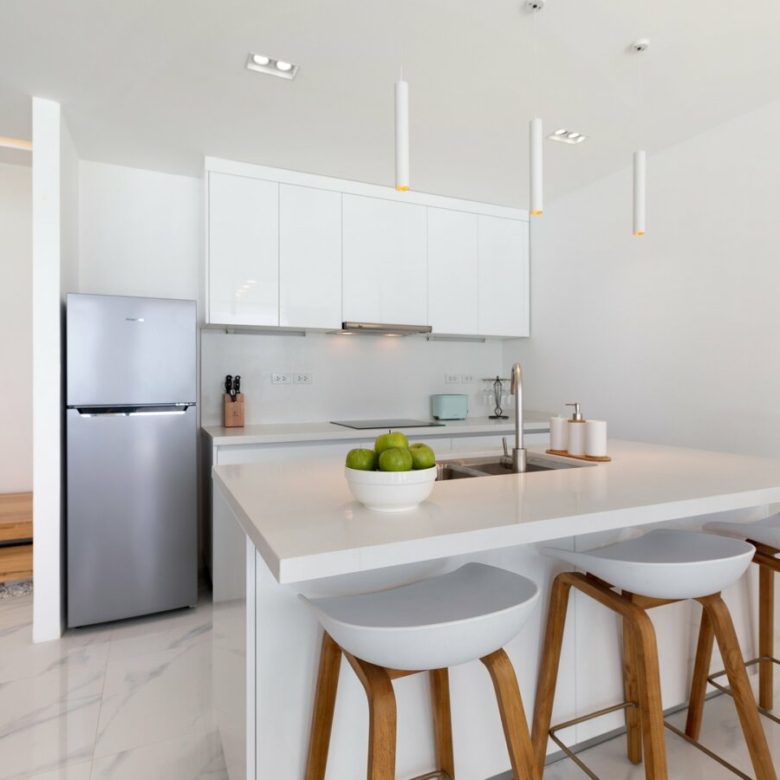 This modern home is sold fully furnished and was completed in 2019 and offers spectacular Seaviews and is built on three levels.