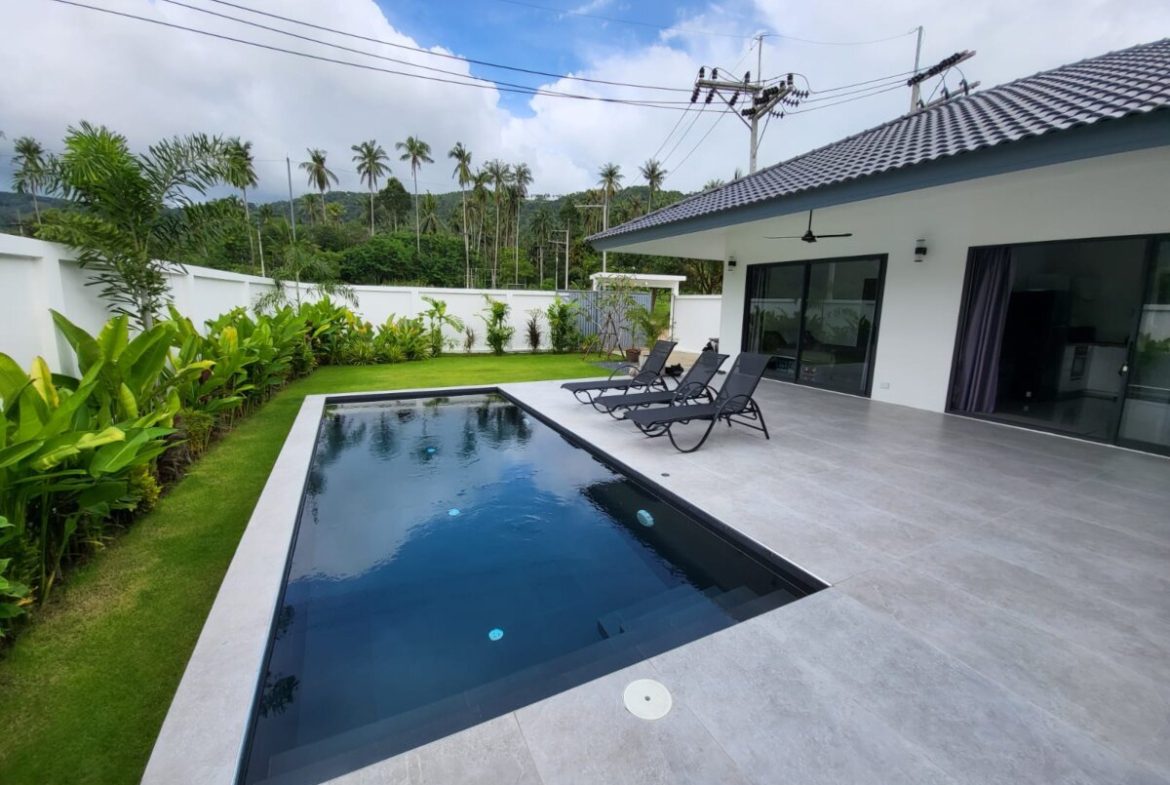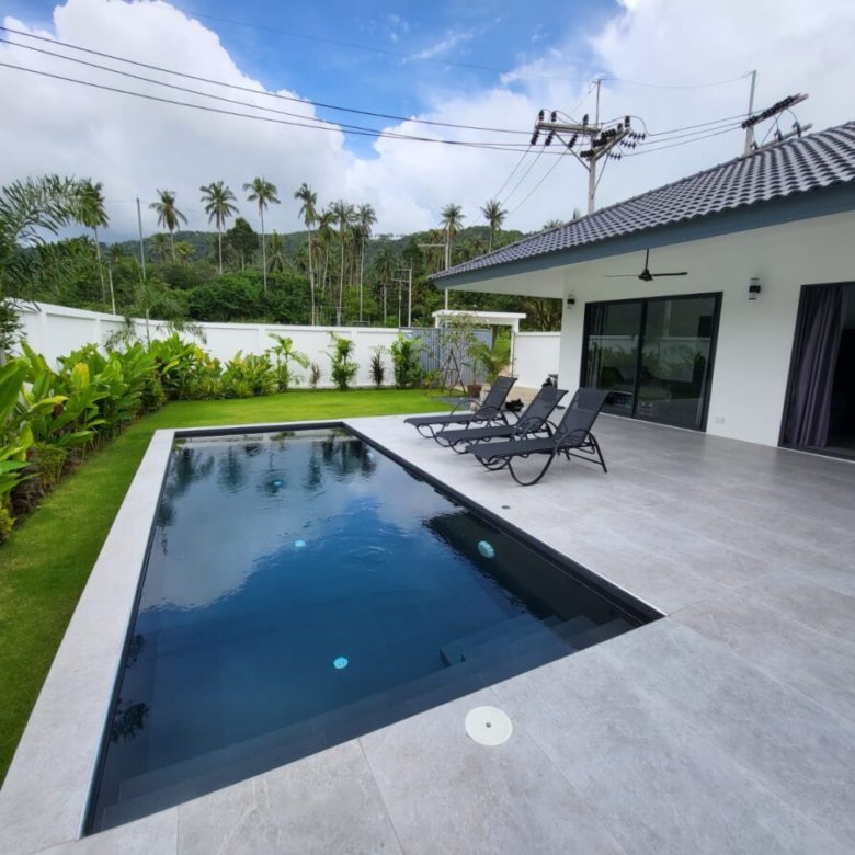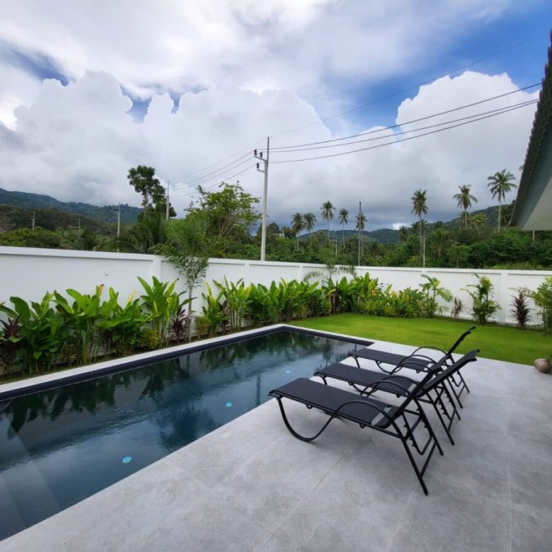 Introducing new 3-bedroom pool villa located in Lamai. This stunning property features a closed garden, a spacious terrace with a beautiful garden and mountain view, and a private pool.
