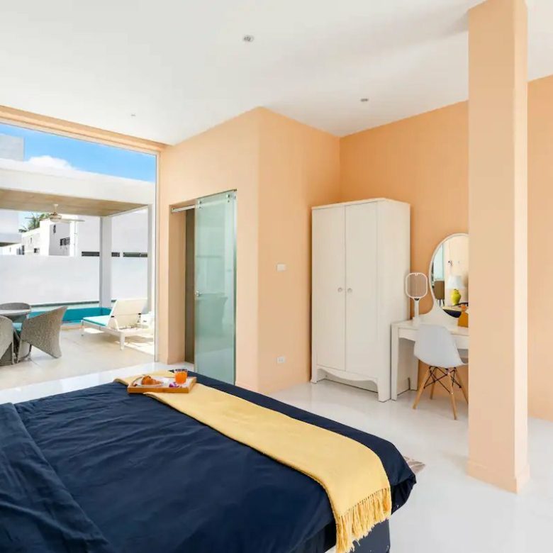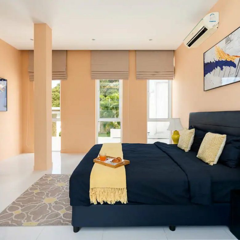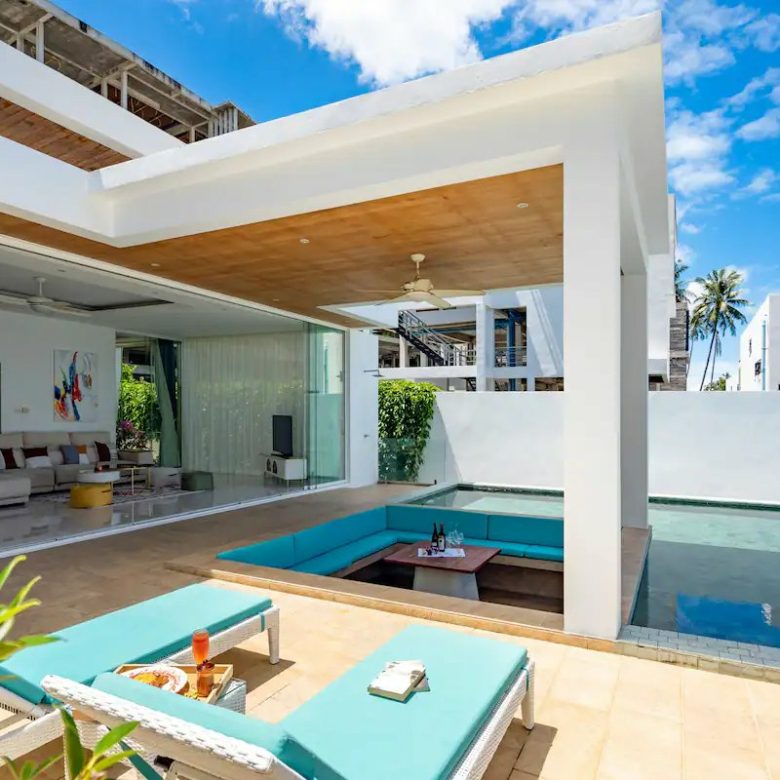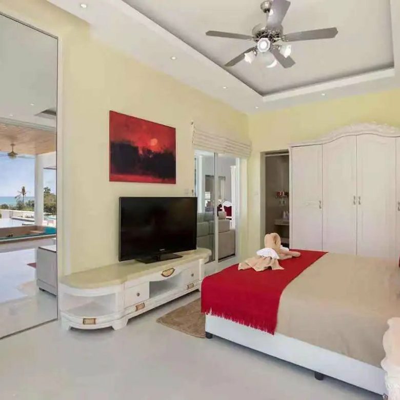 The interior design combines with modern simplicity, European vintage, a touch of Morocco style, and the unique art pieces drew by house owner herself, stands out from all villas in Samui.