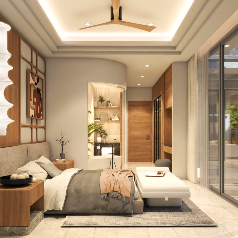 Each villa is thoughtfully designed with open plan interiors, clean architectural lines, and a private rooftop ideal for relaxing or entertaining. The homes feature three spacious bedrooms with their own bathrooms, bright living and dining areas, a fully fitted kitchen, and a private swimming pool surrounded by landscaped gardens. Large openings allow natural light and airflow to enhance everyday living.
