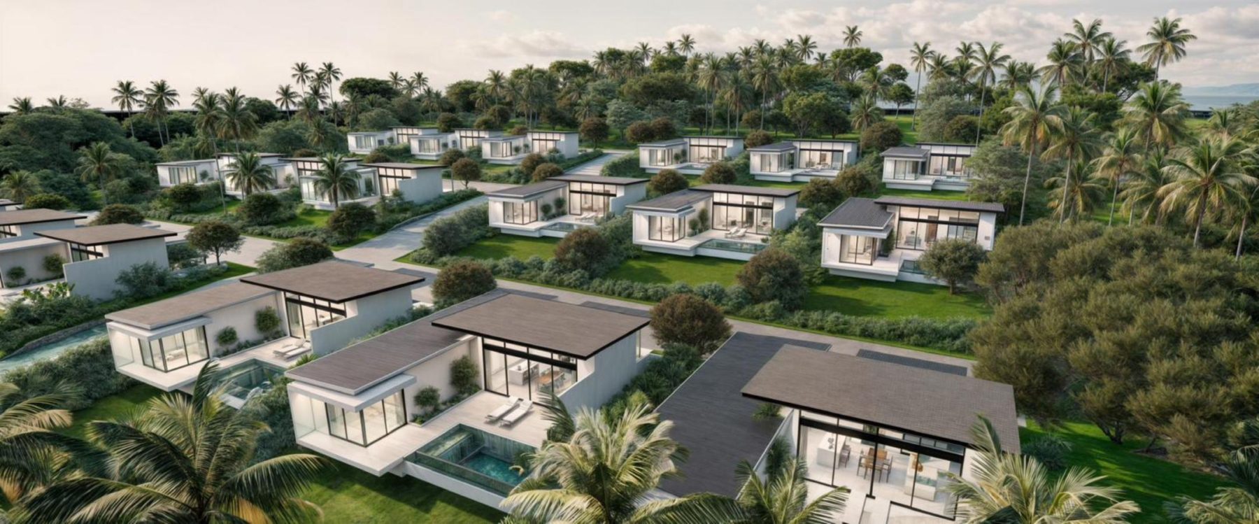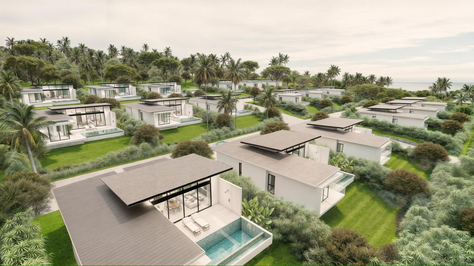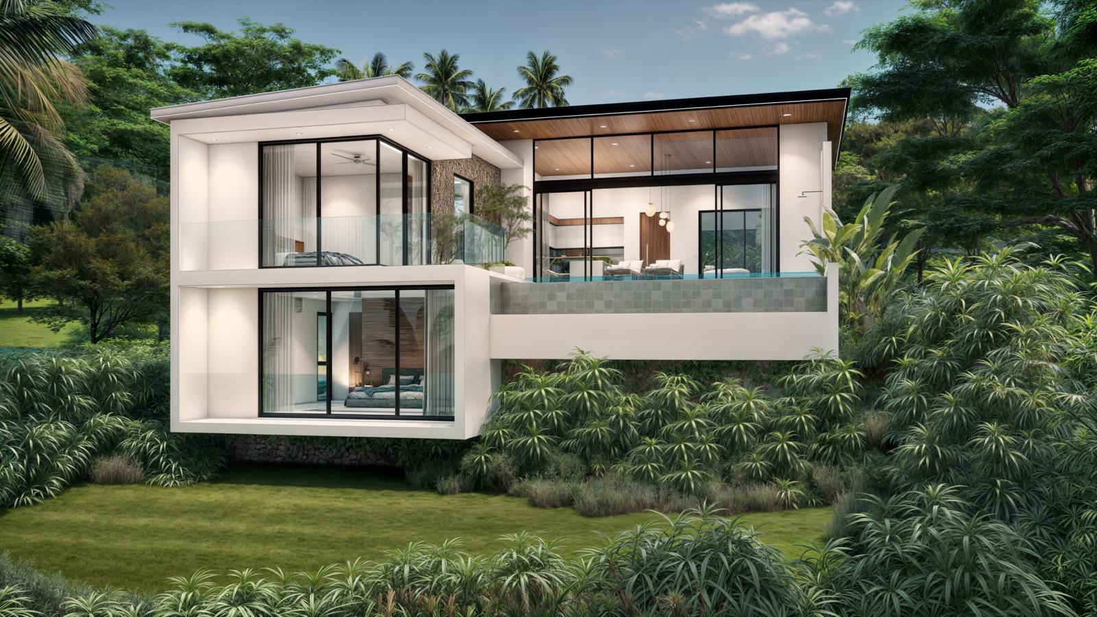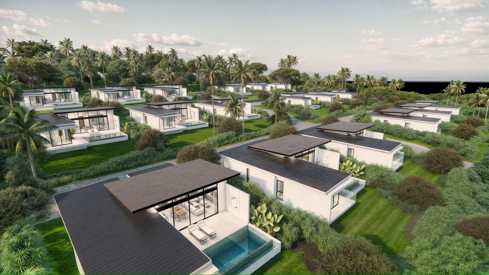 Set amidst the lush tropical surroundings of Maenam, this modern villa project offers an elegant fusion of contemporary design and serene island living. Each home is crafted with clean architectural lines and open living spaces, capturing natural light and the gentle breeze from the hillside.