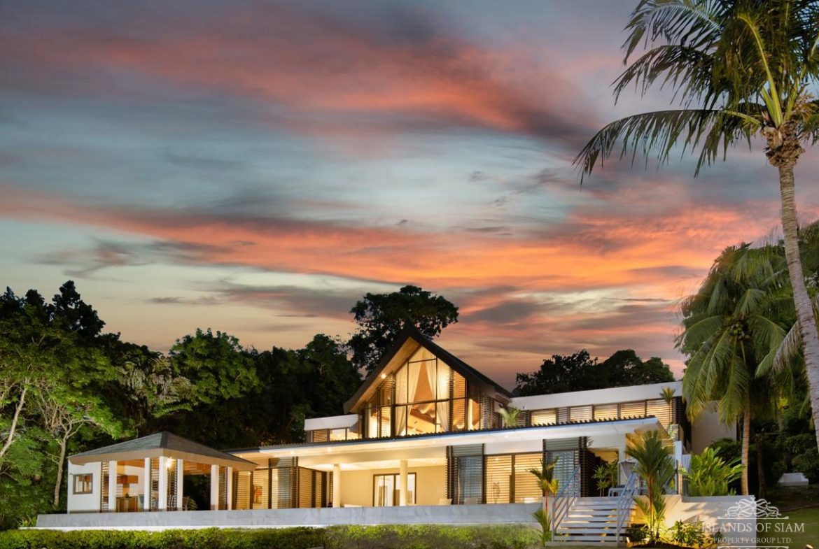 This palatial haven tastefully blends contemporary Thai design with modern grandeur, and features spacious open-plan living areas, opulent interiors, verandas with sweeping sea views, comfortable ensuite bedrooms and all of the modern facilities one would expect from a five-star luxury retreat. A soothing mix of hand-crafted sculptures and vibrant oil and acrylic paintings balance the rich teakwood features, contemporary furnishings and warm lighting to enhance serenity. The tiered verandas incorporate a reflective pond above a stylish 30-metre infinity pool with swim-up bar and adjacent alfresco dining area.