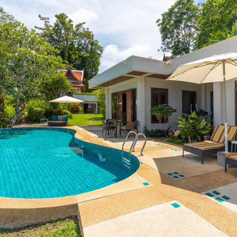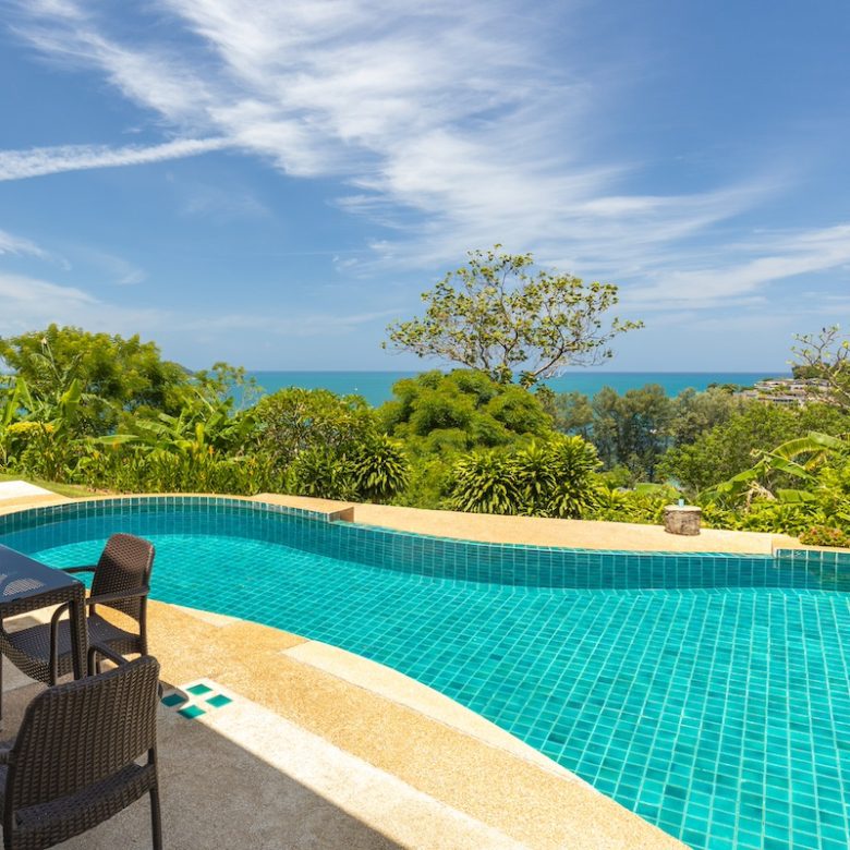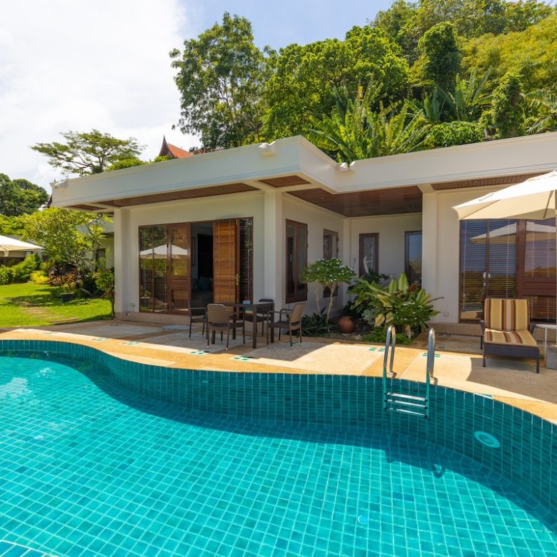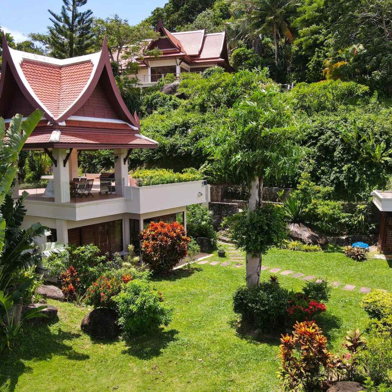 Nakathani Villas, located in the tranquil setting of Kamala Beach, offers luxurious living with stunning 180-degree panoramic views of both the ocean and surrounding mountains.