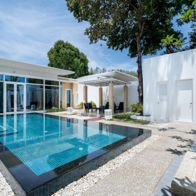 A Peaceful Retreat for a Relaxing Family Vacation. A modern home with a beautiful, cozy interior and a view of a spacious garden. The villa is just a 3-minute walk from the beach. Floor-to-ceiling glass walls and doors, bright living spaces and bedrooms, an incredible pool, and a jacuzzi â this is what holiday dreams are made of!