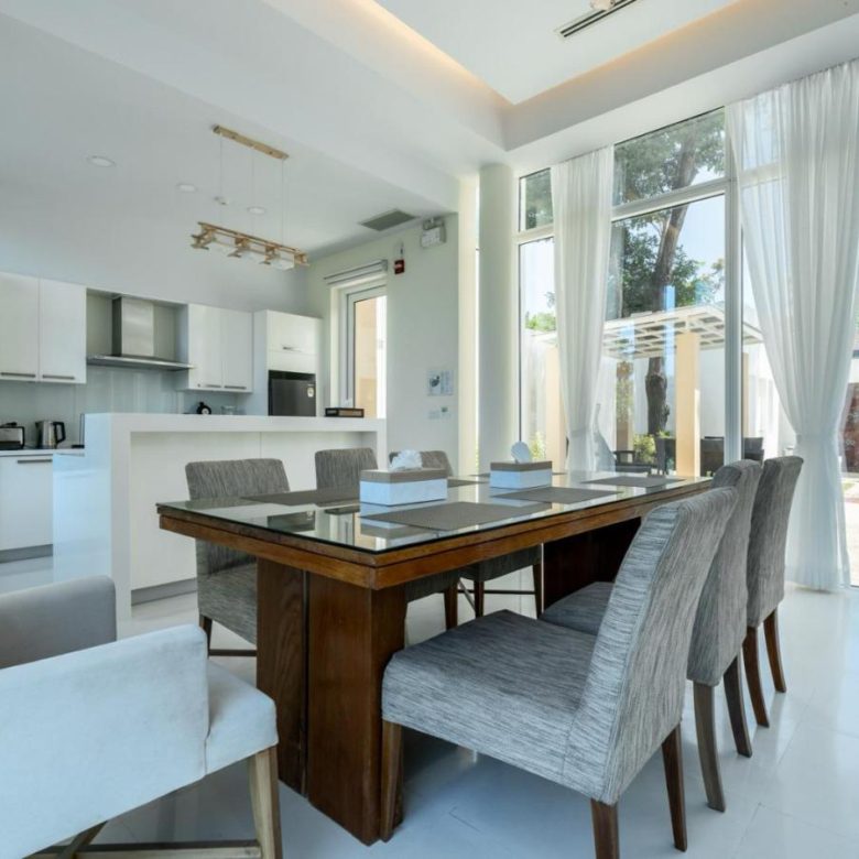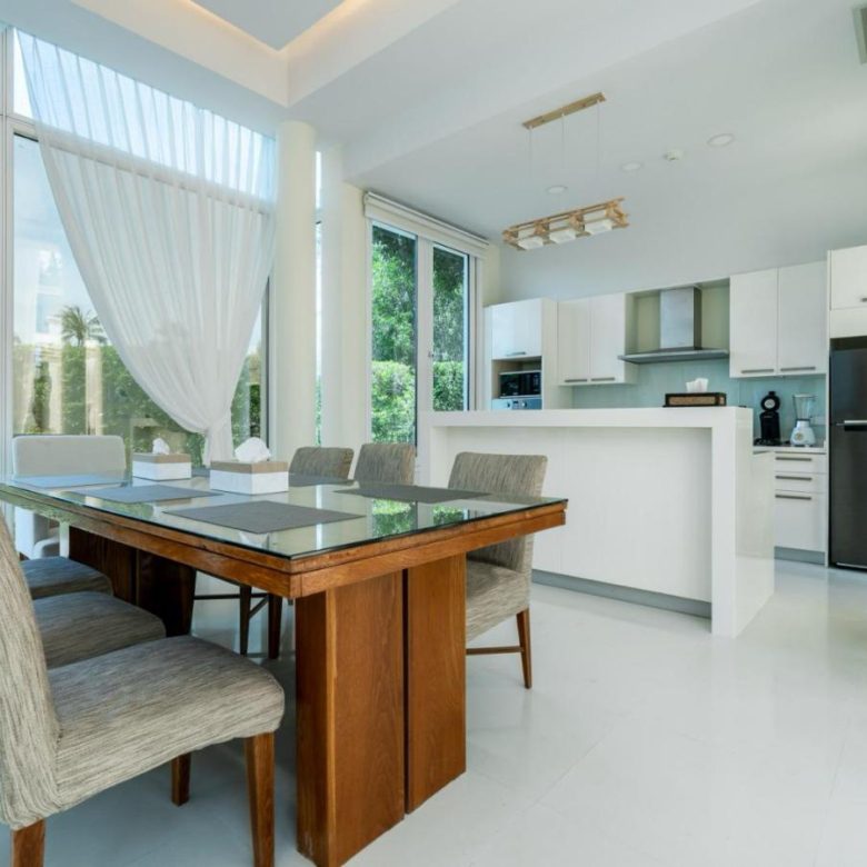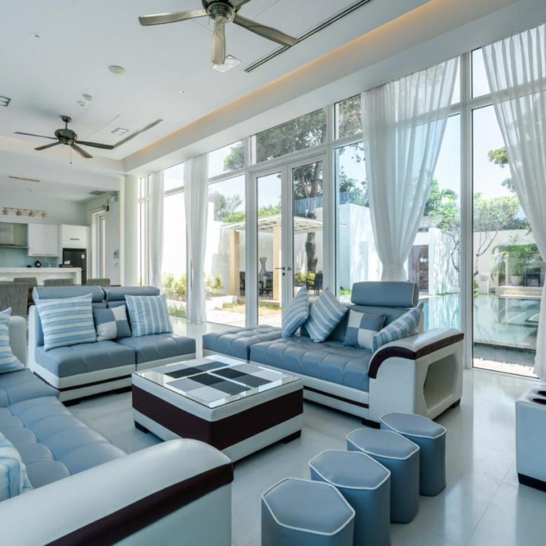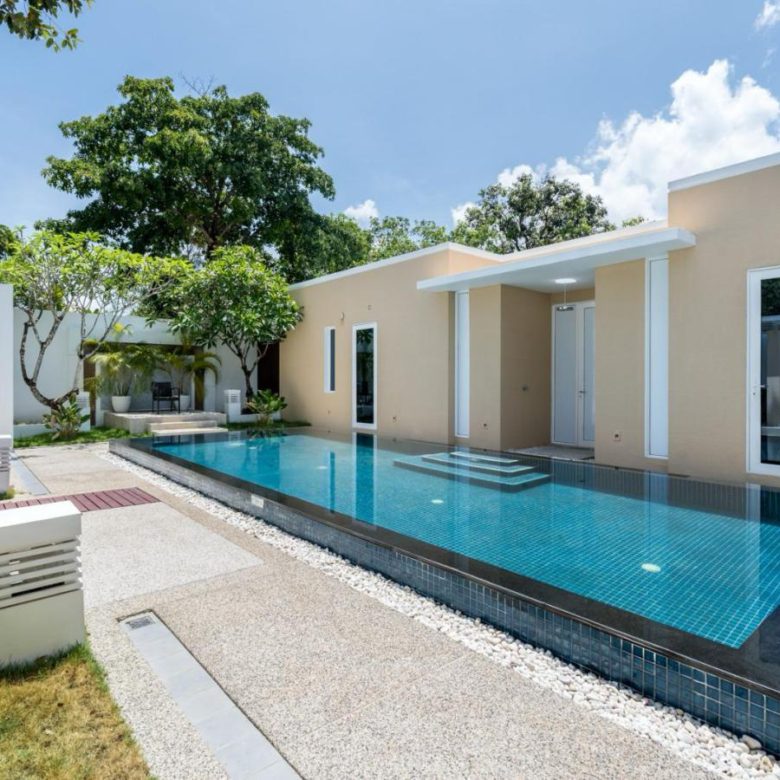 The villa features 2 bedrooms, designed with warm local wood and cream-white walls. All bedrooms are air-conditioned and boast a cozy, welcoming interior. Each room has a spacious wardrobe for your belongings. The 11 x 5 meter pool is perfect for a swim and capturing amazing photos for your Instagram feed. The villa also has a very spacious living room, beautifully decorated and furnished with comfortable seating. A modern kitchen and a large dining table are also at your disposal.
