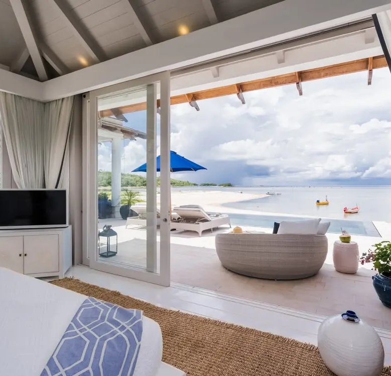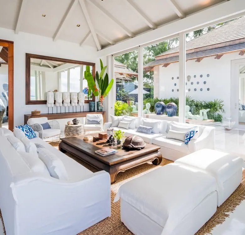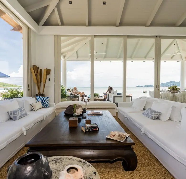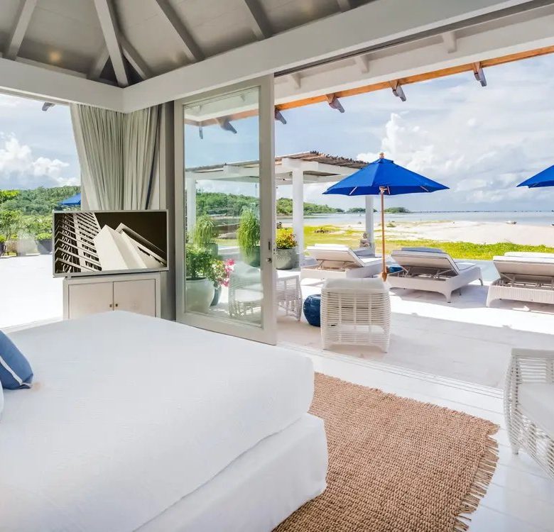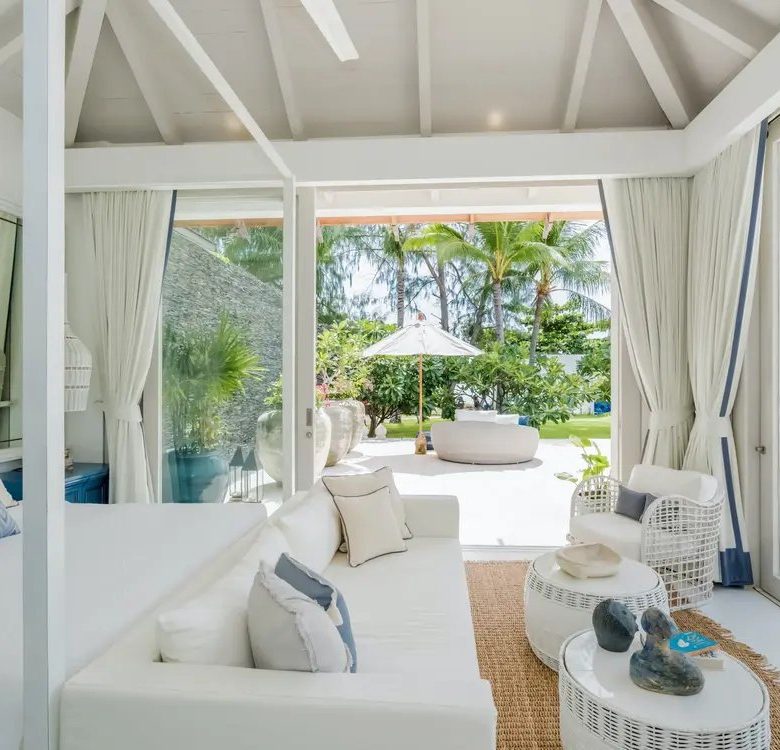 The palatial proportions of this villa include high vaulted wood panelled beamed ceilings. The property is roofed in cedar shingles and all rooms have sliding glass walls that open to the garden or pool deck. The high ceilings are painted white, giving all 4 bedrooms brightness and a clean, modern feel. The property features a cohesive design and the layout is practical and accessible for guests of all ages. The villa is equipped with audio connections so music lovers can listen to their favourite tunes while partying, relaxing, dining or lounging.