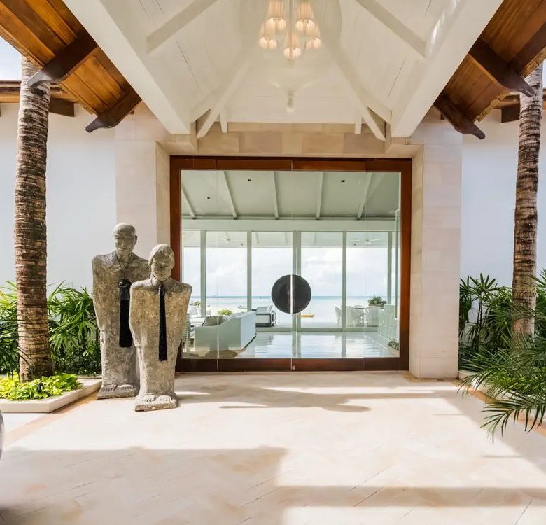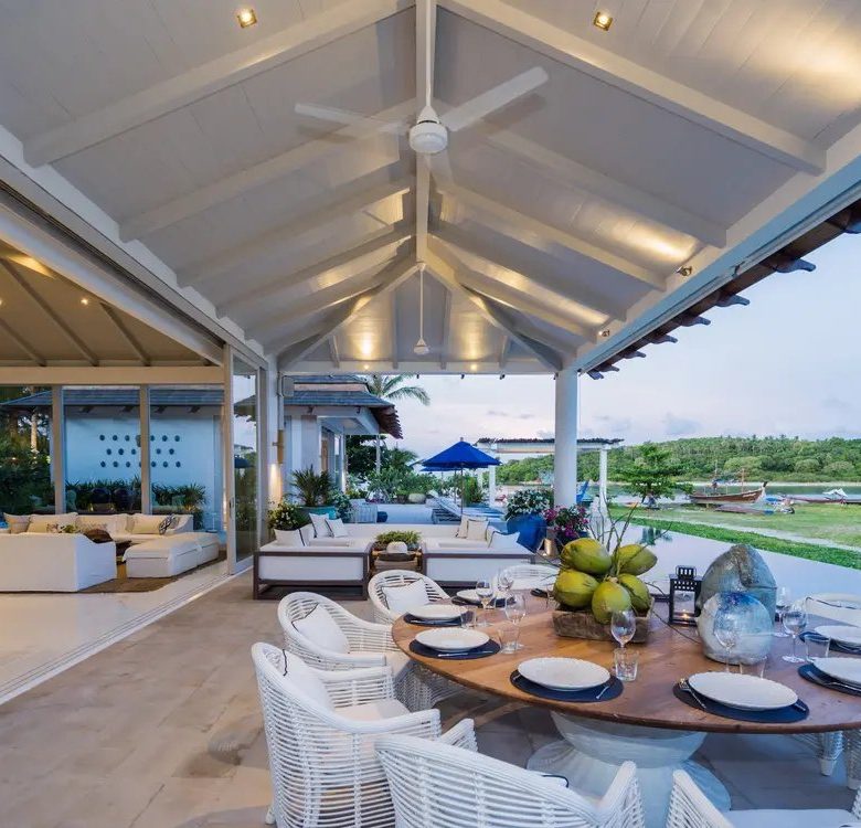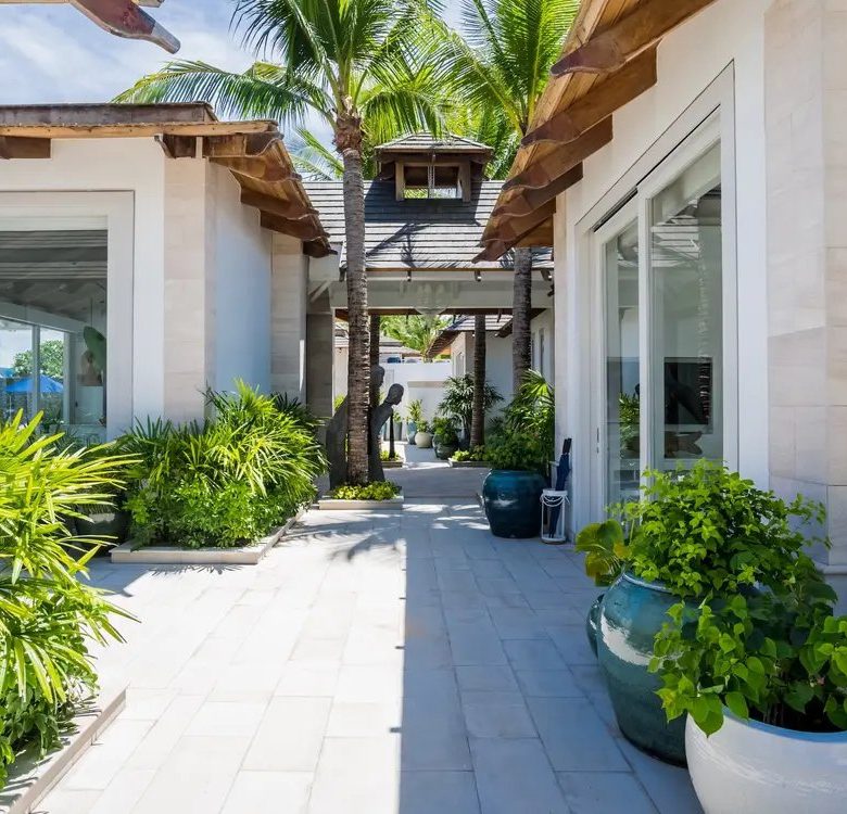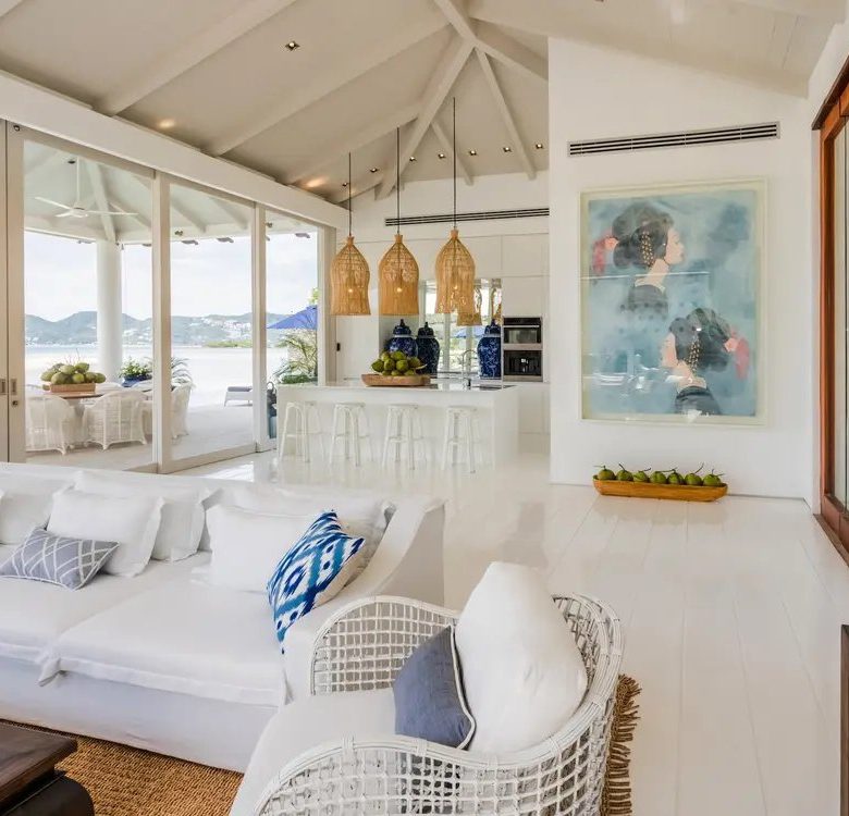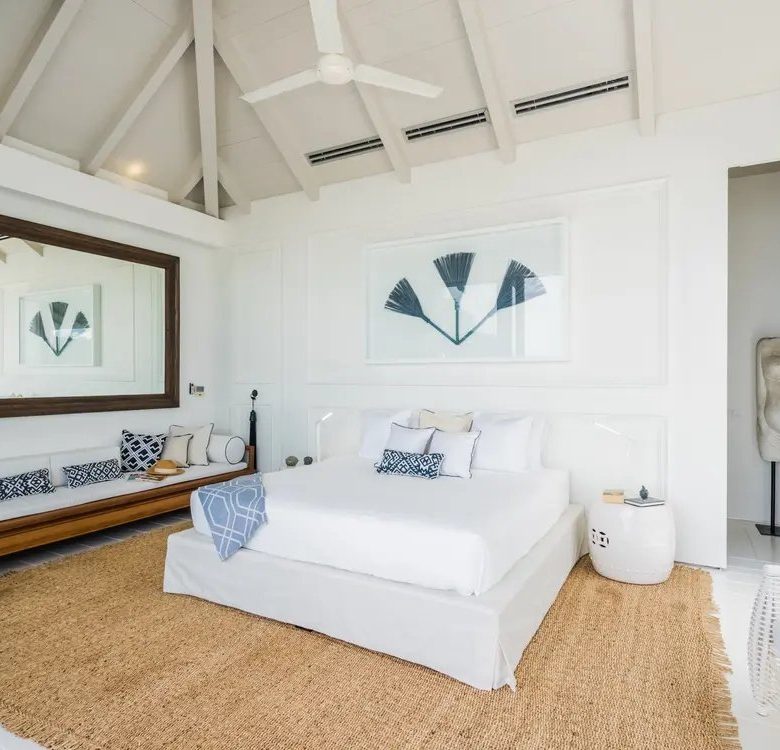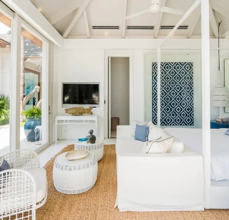 The palatial proportions of this villa include high vaulted wood panelled beamed ceilings. The property is roofed in cedar shingles and all rooms have sliding glass walls that open to the garden or pool deck. The high ceilings are painted white, giving all 4 bedrooms brightness and a clean, modern feel. The property features a cohesive design and the layout is practical and accessible for guests of all ages. The villa is equipped with audio connections so music lovers can listen to their favourite tunes while partying, relaxing, dining or lounging.