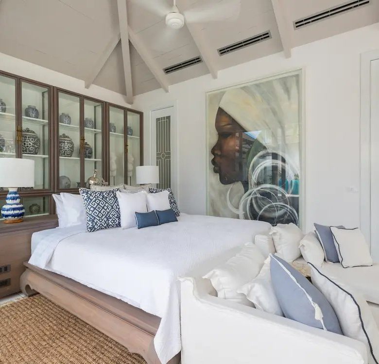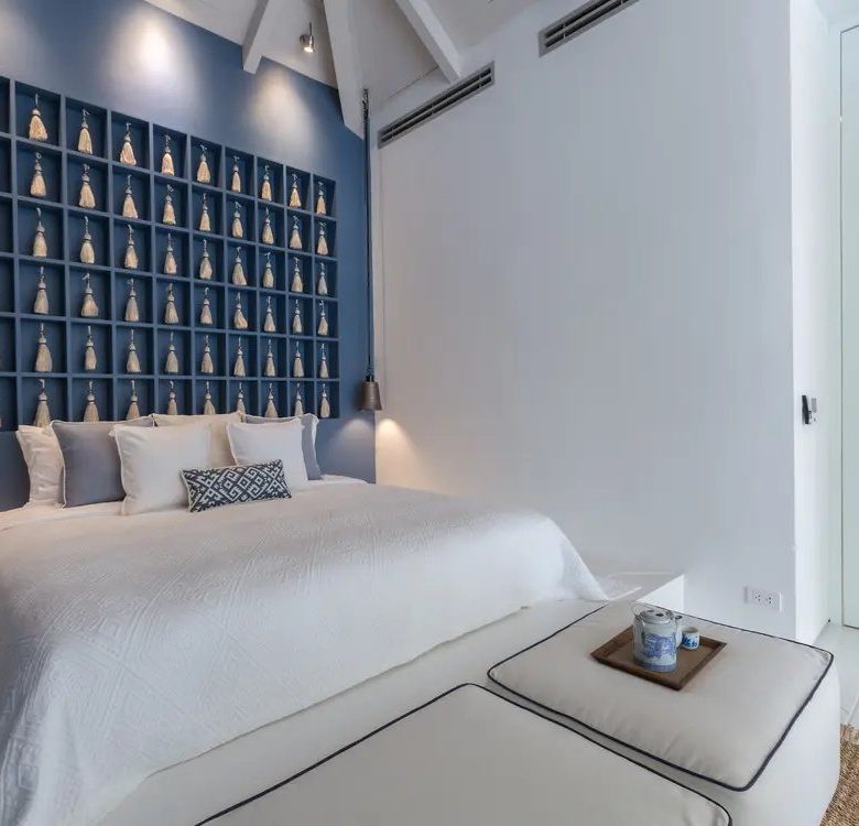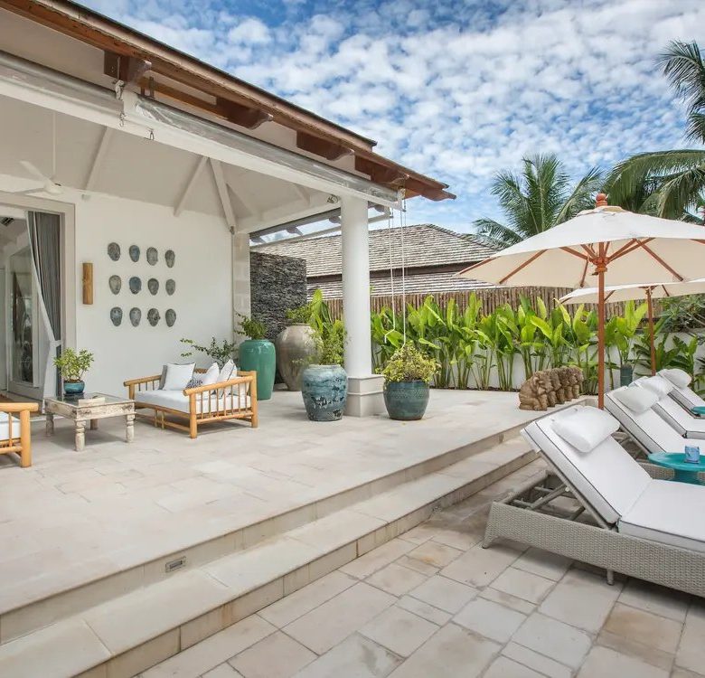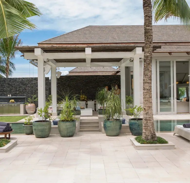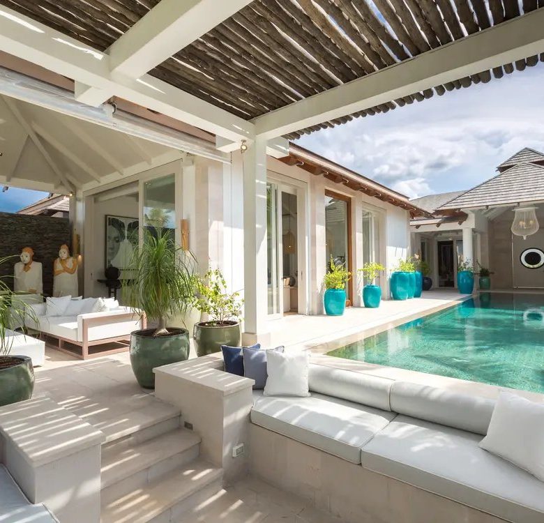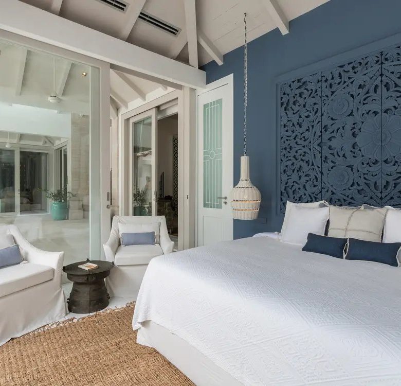 The elegantly furnished bedrooms feature king-size beds, LCD TVs with Netflix, built-in wardrobes, personal safes, minibars and large mirrors. Each bedroom has an en-suite bathroom with a walk-in rain shower and dual vanities, and the master bedroom and bedroom #2 have a small private garden with tropical plants and an outdoor rain shower. All bedrooms overlook the pool and have direct access to the pool deck.