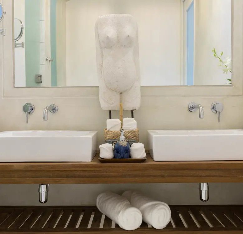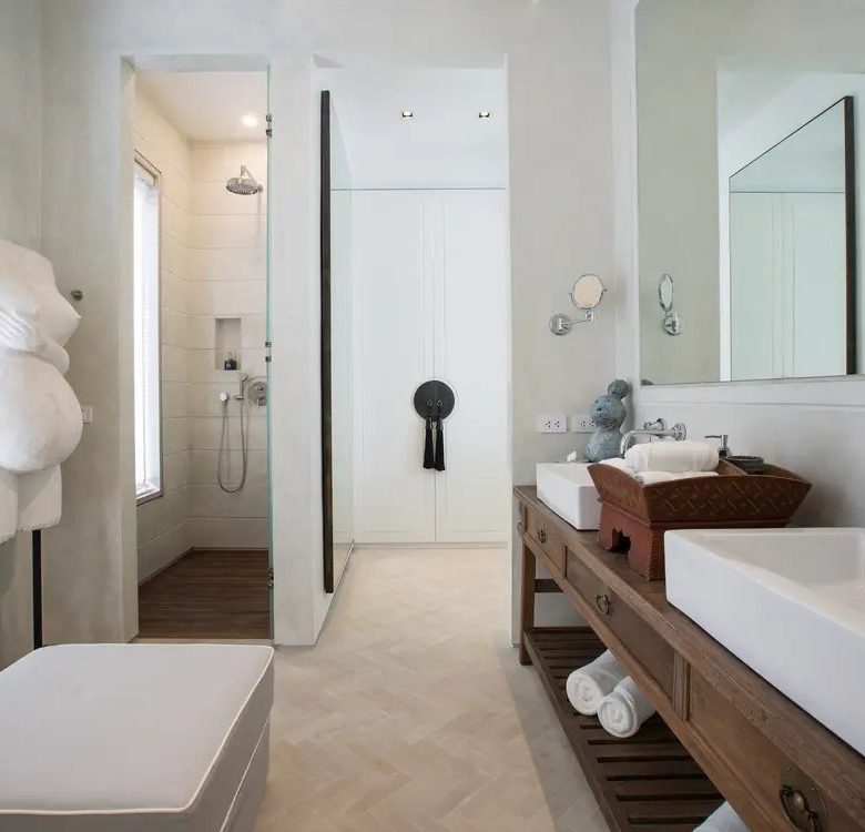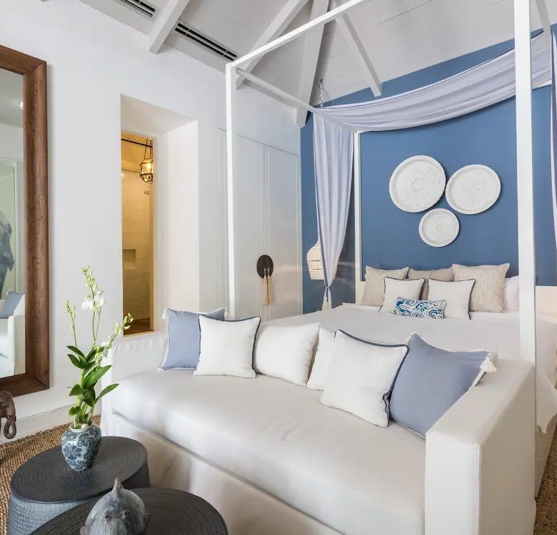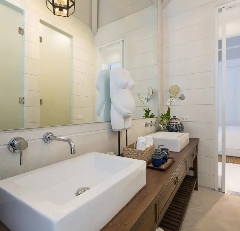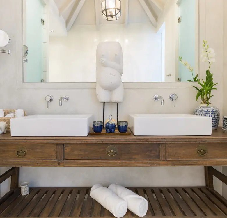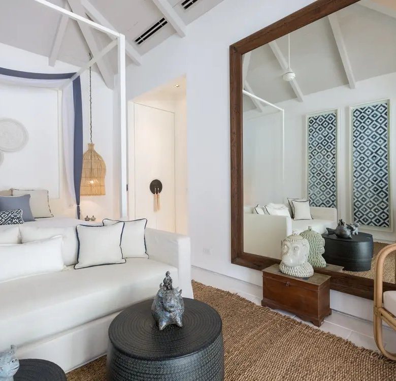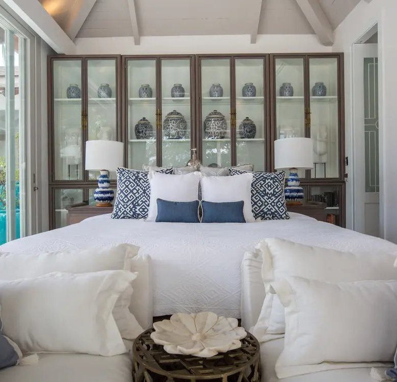 The elegantly furnished bedrooms feature king-size beds, LCD TVs with Netflix, built-in wardrobes, personal safes, minibars and large mirrors. Each bedroom has an en-suite bathroom with a walk-in rain shower and dual vanities, and the master bedroom and bedroom #2 have a small private garden with tropical plants and an outdoor rain shower. All bedrooms overlook the pool and have direct access to the pool deck.
