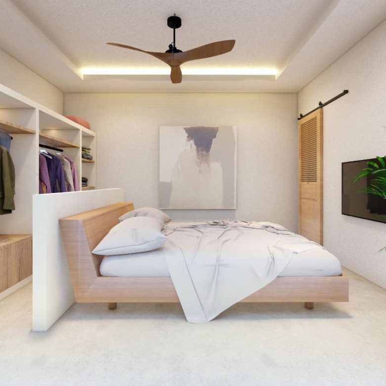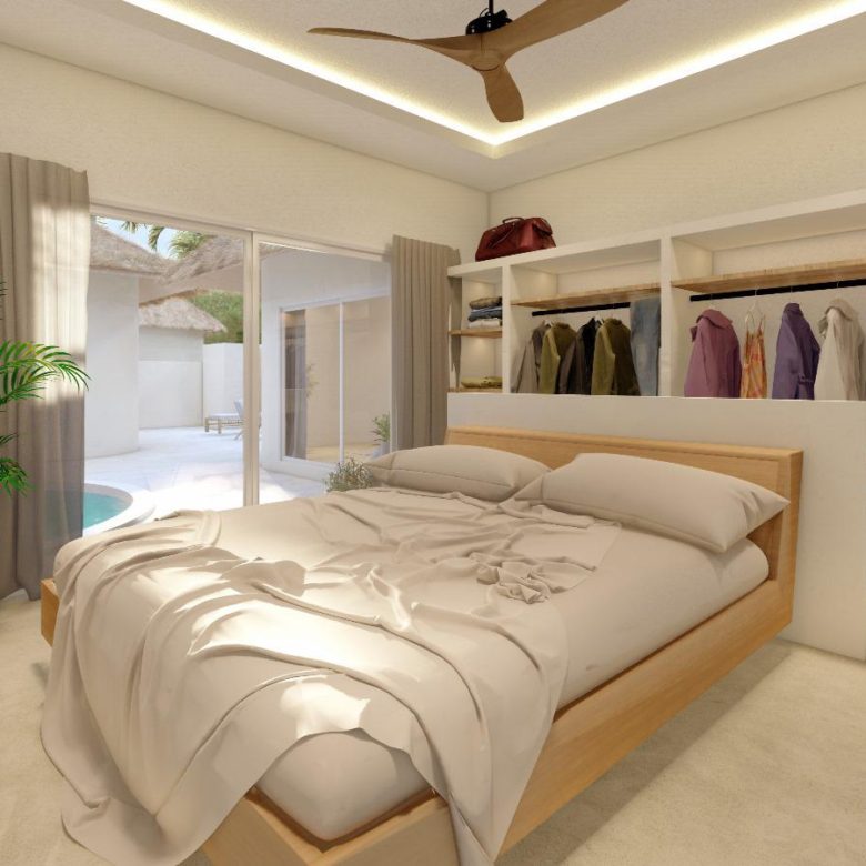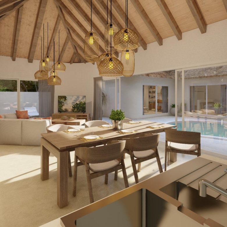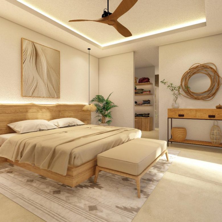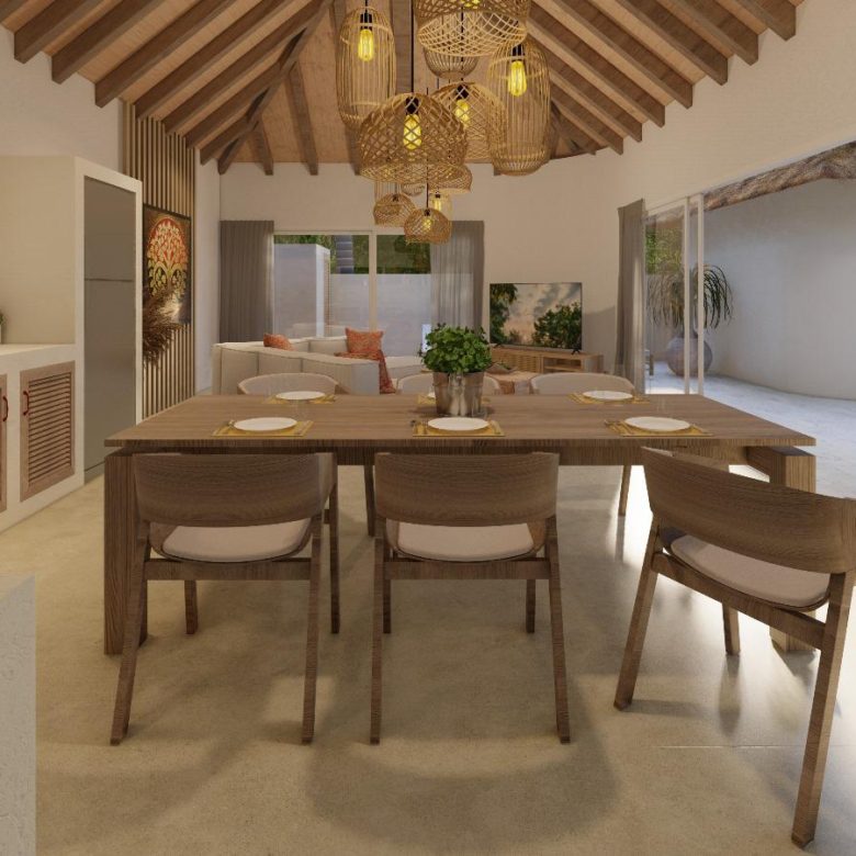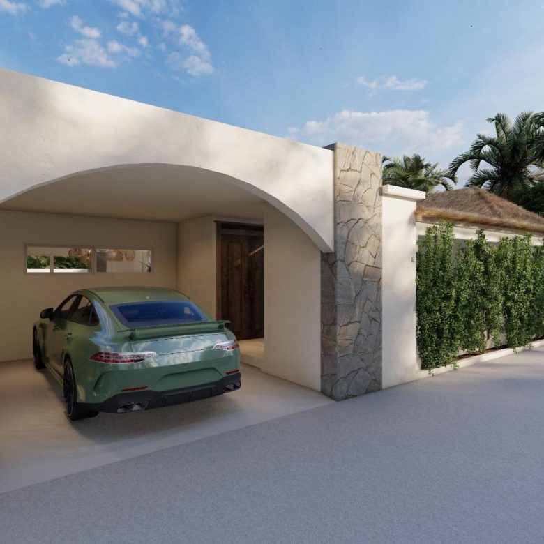 From the Balinese-style wooden entrance to the light beige waxed concrete floors, every detail reflects timeless sophistication. High decorative ceilings and sleek aluminum sliding doors fill the villa with natural light, creating seamless indoor–outdoor living.