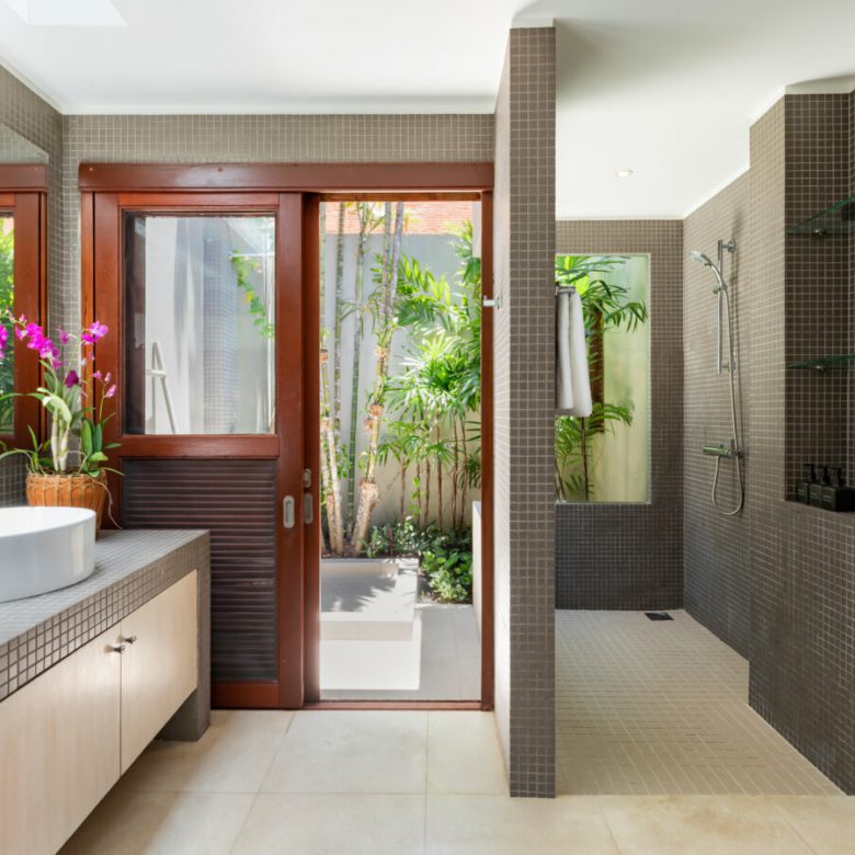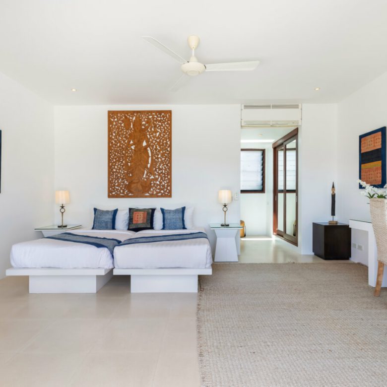 Panorama Summit has five spacious bedrooms, each with floor to ceiling sliding glass doors, plenty of storage, ceiling fans and air-conditioning. The two master bedrooms have wooden floors and private terraces. There are also two twin ensuite guest rooms and a spacious fifth bedroom tucked into the far western section leading straight out onto the pool.