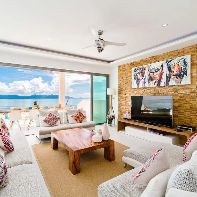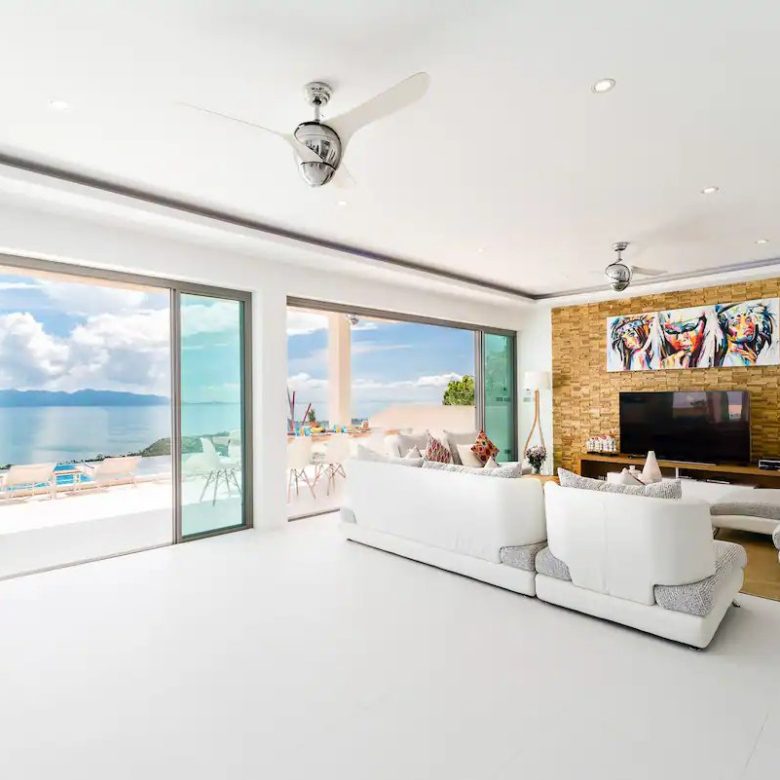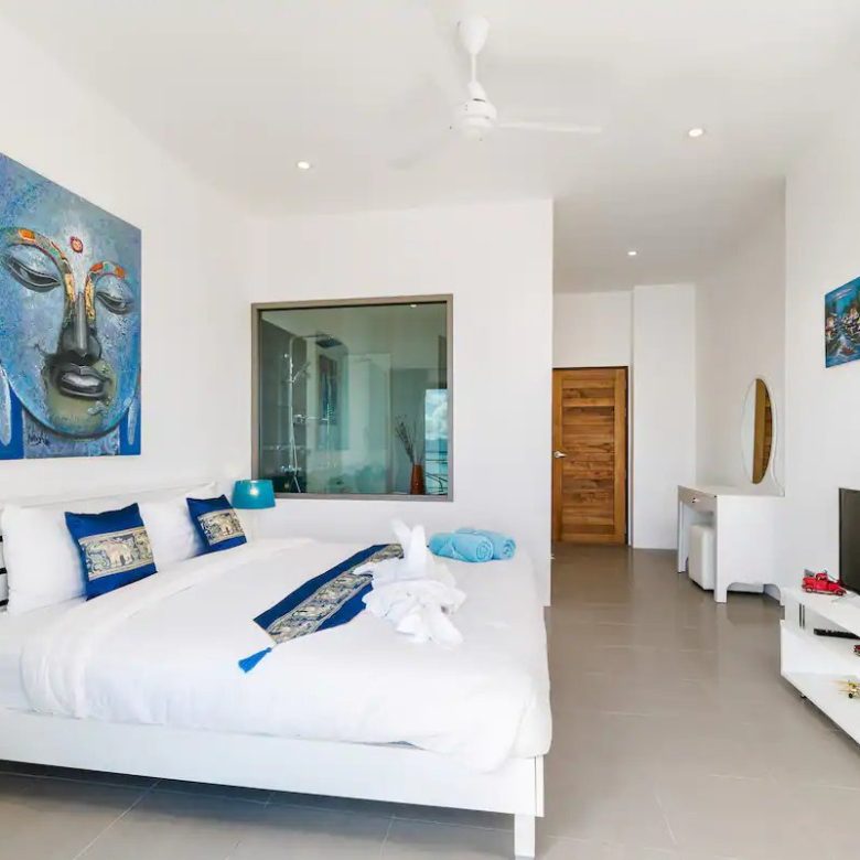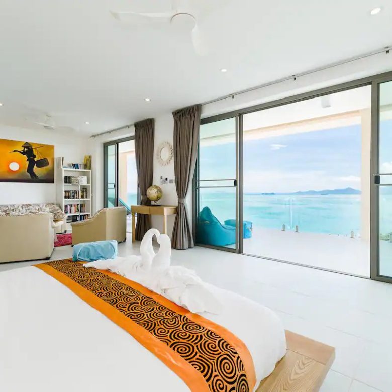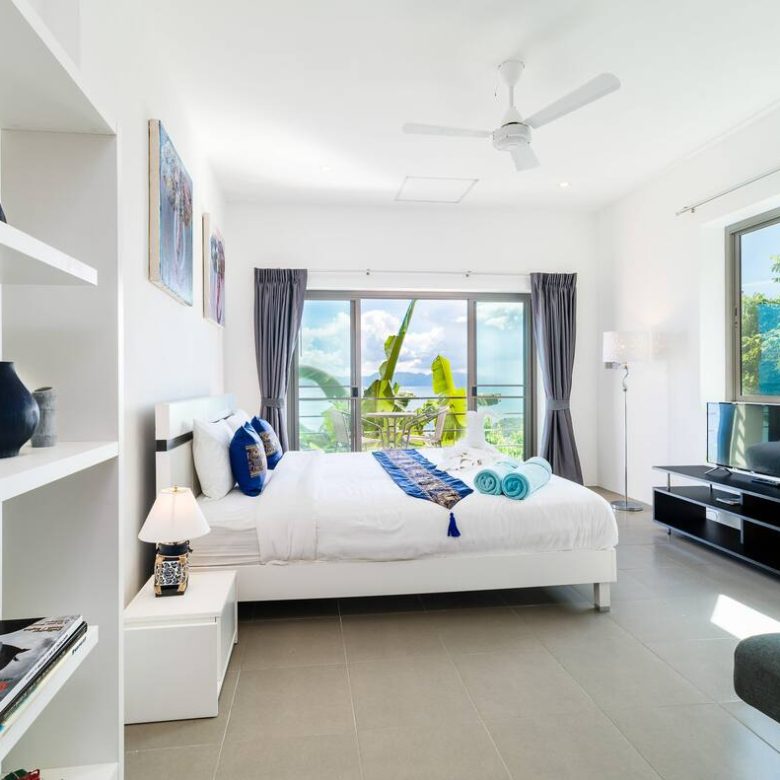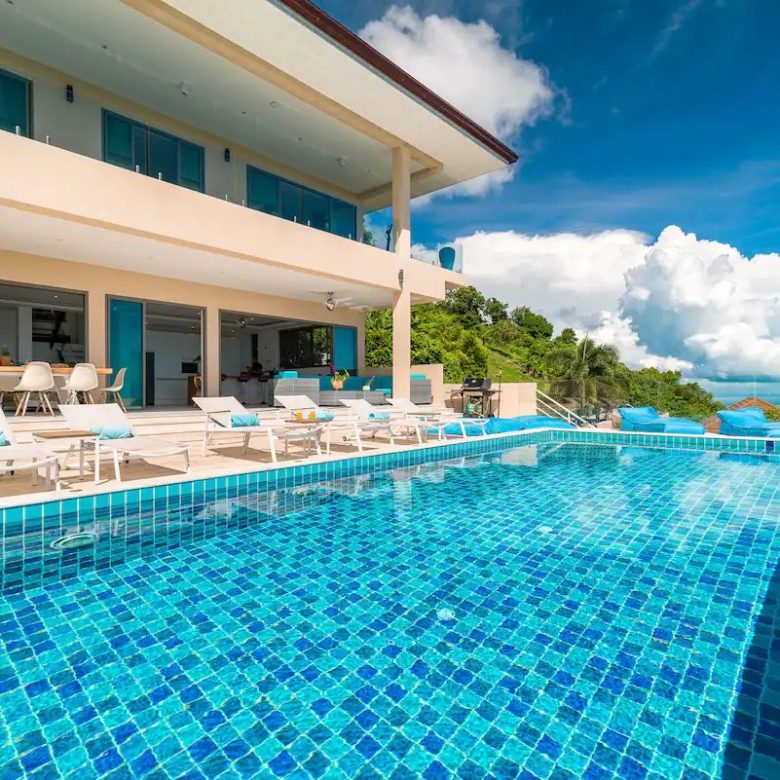 Located in a private and secured residence in the hills of Maenam, just 2 km from the heavenly beaches of Bang Po, the villa features 5 air-conditioned bedrooms with en-suite bathrooms and panoramic sea views, which you can also enjoy while showering in the 2 additional and intimate outdoor showers.