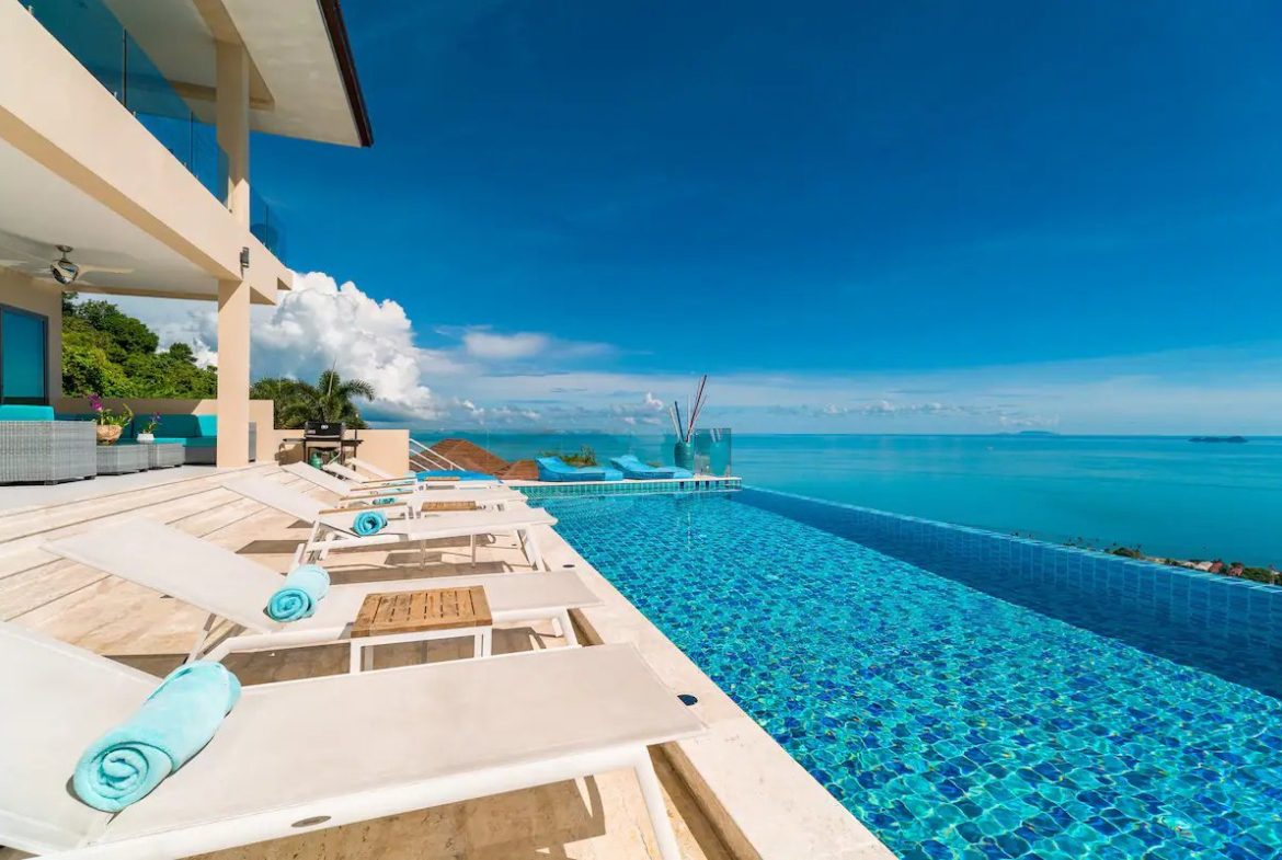 This luxurious villa has an amazing 180° panoramic sea view on the paradise island of Koh Samui overlooking Koh Phangan, Koh Tao and Anghtong Marine National Park!