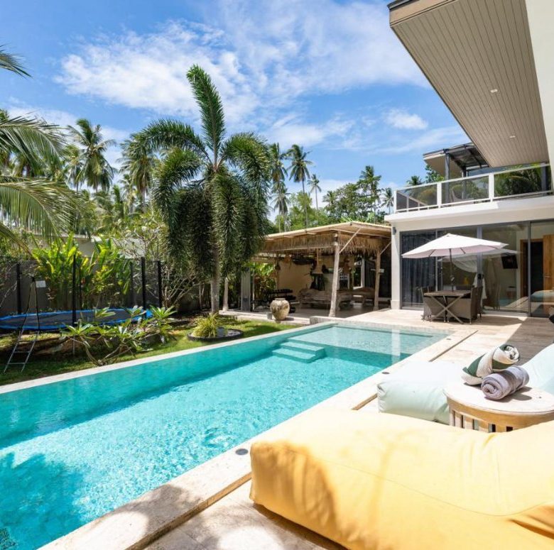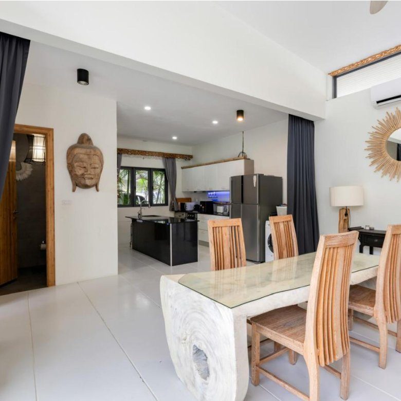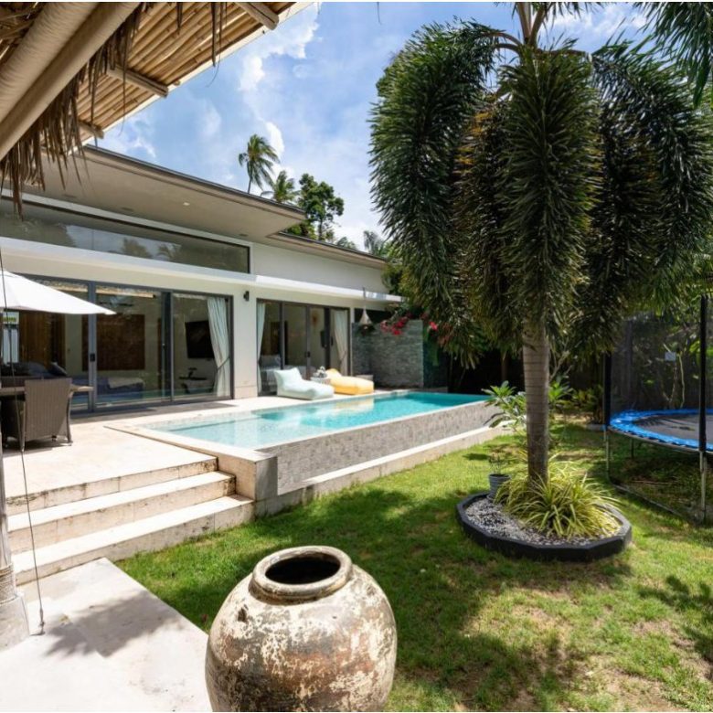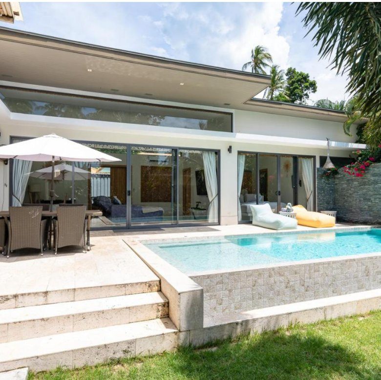 Set in the serene coastal enclave of Bangkao in southwest Ko Samui, this expansive pool villa offers a rare blend of privacy, wellness, and convenience. Just a short walk from the sandy shores of Bangkao and Laem Sor beaches, the property is surrounded by tropical greenery and the calming rhythm of island life—yet remains effortlessly connected to key amenities and lifestyle destinations.