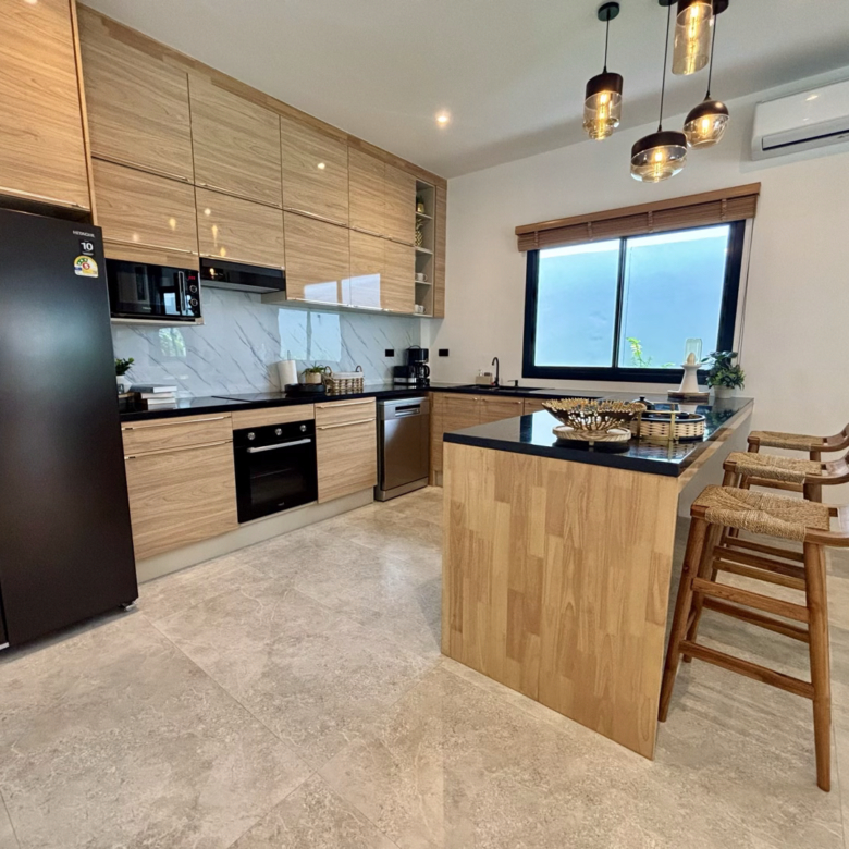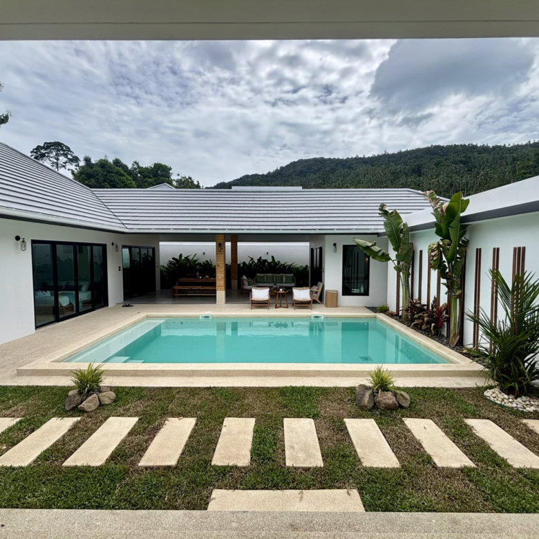 Tucked away in the tranquil hills of Lamai, Banyan Grove Villa is a contemporary three-bedroom retreat that blends modern living with a beautiful island inspired design. Surrounded by lush greenery and set within a peaceful neighborhood, this brand new villa offers the perfect balance of privacy, comfort, and convenience : whether as a private residence, holiday escape, or high-yield investment.