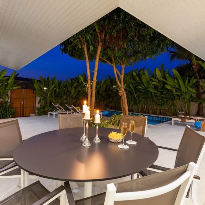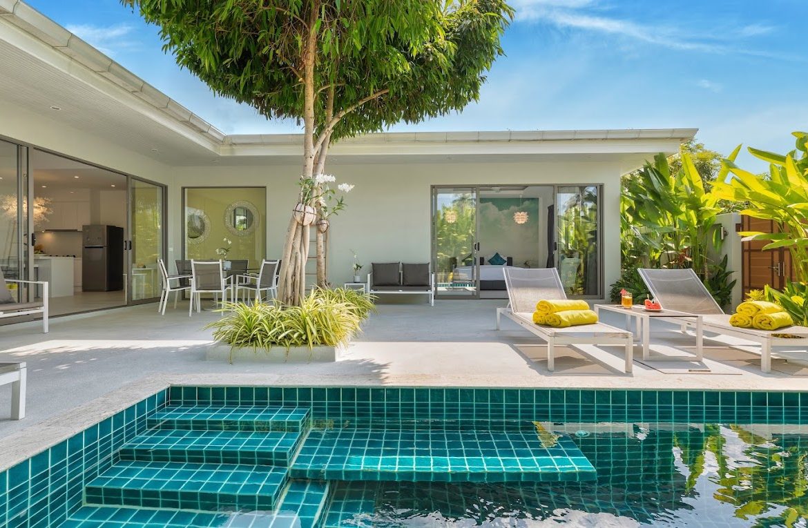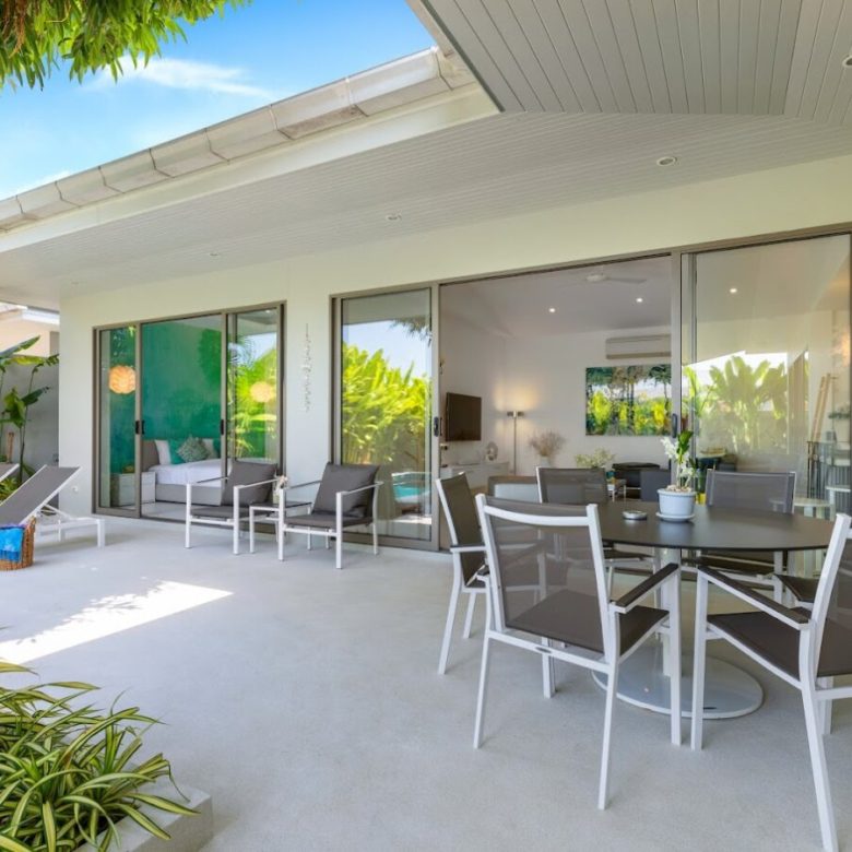 This huge three bedroom and one story villa is fully equipped for all desires. Park your car or scooter in front of the house and enter your very private oasis with a nice pool area surrounded with green plants. Enjoy the hot sun on the sunbed, cool down in the pool or chill out in the shadow under the trees. Listen to the silence – this feels like paradise. It’s all yours!