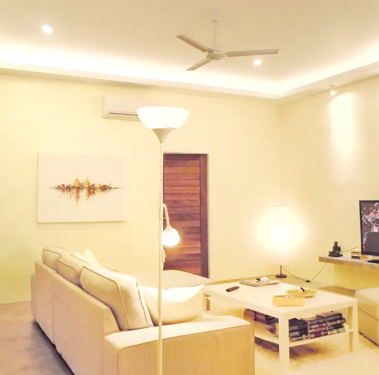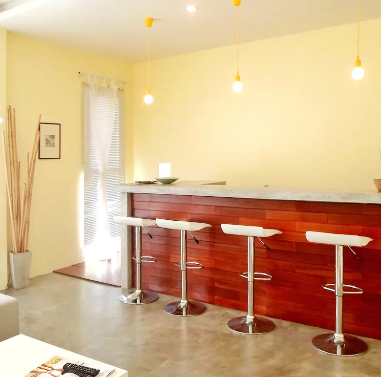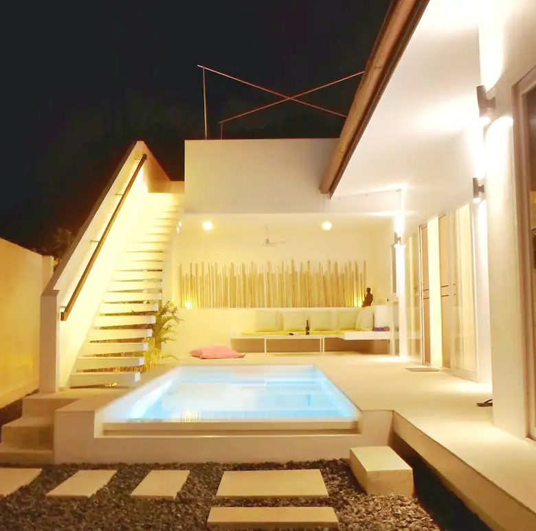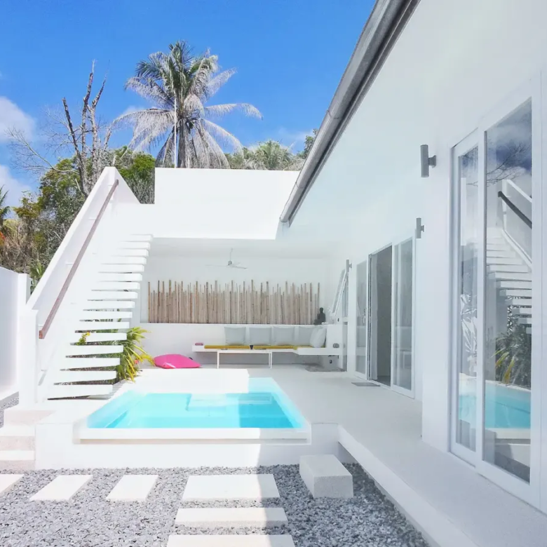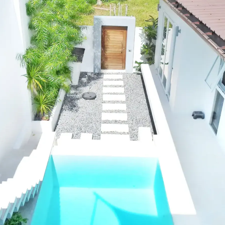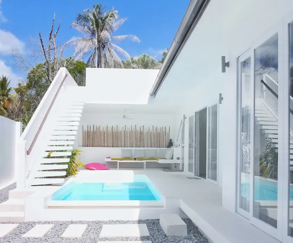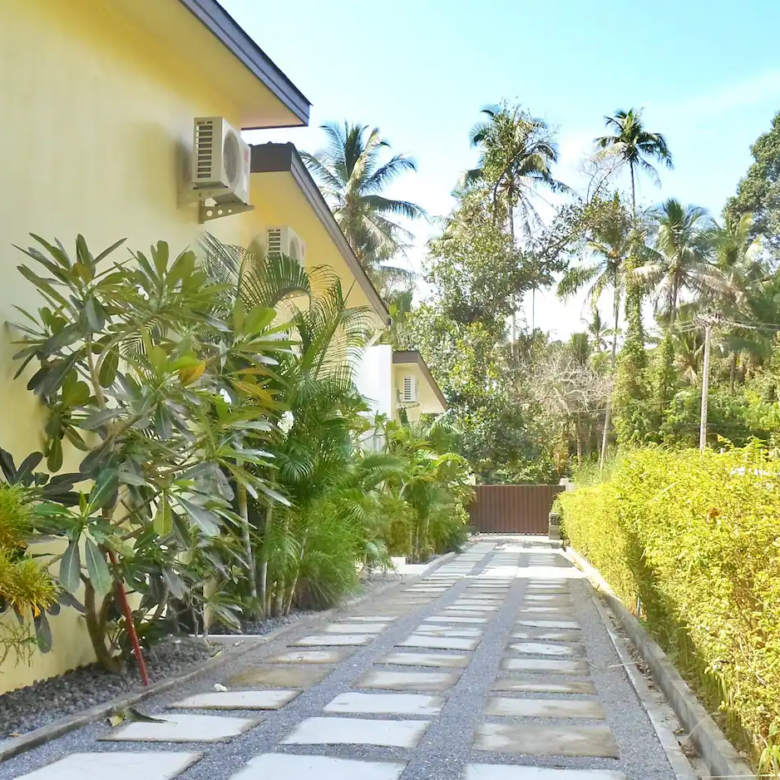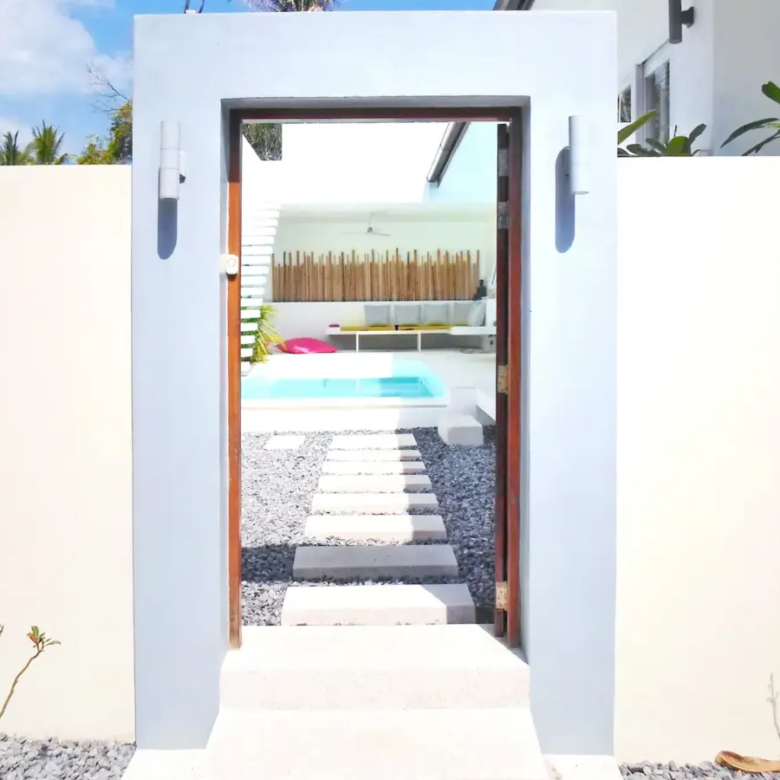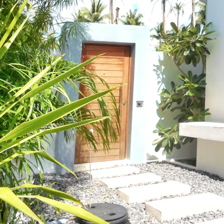 These pool villas are located in a very quiet and beautiful area, surrounded by nature and coconuts. But, yet, they are very close (about 1km) from the bustling Lamai City, and it’s wonderful beaches. Convenient shops, groceries and bakeries are also within walking distance. You will enjoy the best of both worlds: living in nature, but only 3 minutes from Lamai Town and its numerous restaurants, bars and nightlife.