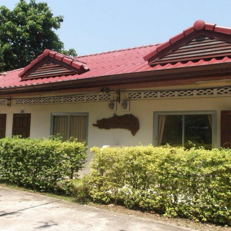 Across the footbridge, the rear plot hosts 12 individual chalets, each with private shower and toilet facilities. This layout provides a ready-made framework for a boutique resort, wellness retreat, or long-stay rental concept, with the stream and bridge adding a distinctive natural ambiance that enhances the guest experience.