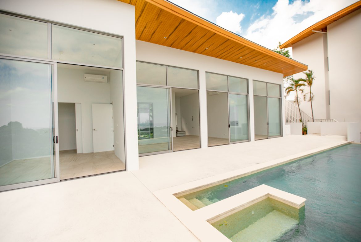 Recently completed villa with 3 spacious bedrooms, large bathrooms, featuring high ceilings and floor to ceiling windows. Prime North East location with Sea views over Choeng Mon. Swimming pool incorporates private Jacuzzi. There is also a separate area with an outdoor BBQ and shower area. Private car parking and entrance includes a water feature, pond and landscaping.