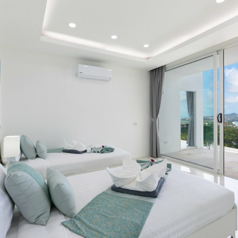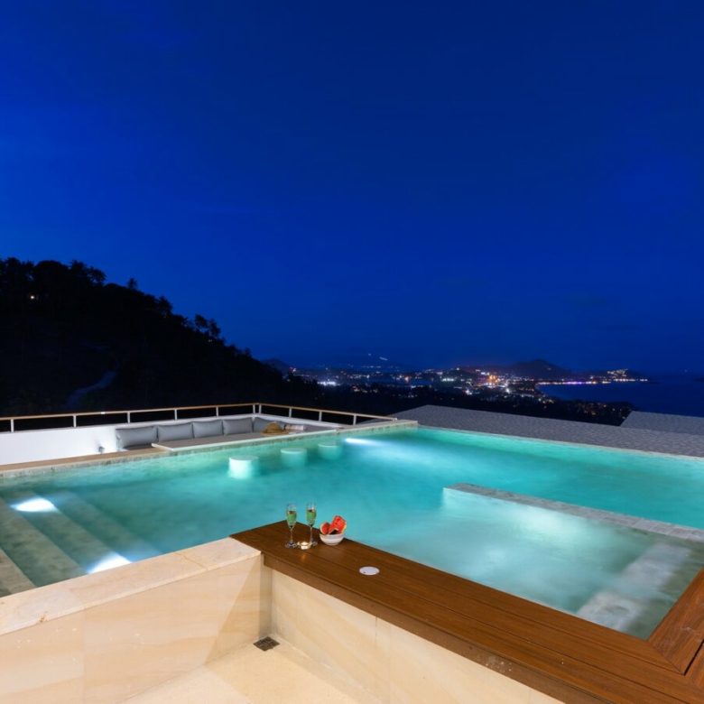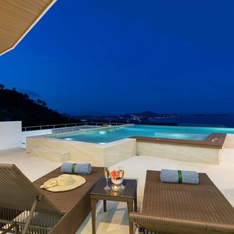The villa itself enjoys labish views over Chaweng with sweeping views over the beach, the lake , airport and city and you can enjoy these marvelous views by day and be bedazzled by city lights by night .