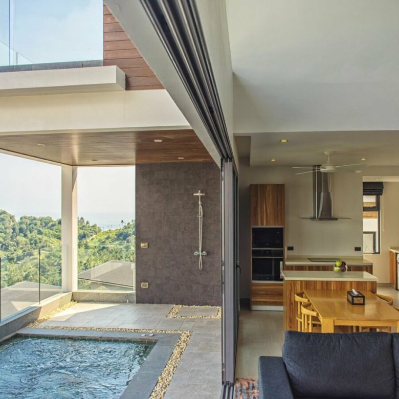 Nestled at the peak of the Chaweng Noi Ridge this property is in a new development in Chaweng Noi. The two bedroom villa has a commanding view over Chaweng lake, Koh Samui international airport, Matlang Island and the beautiful coastline of the east of KohSamui.