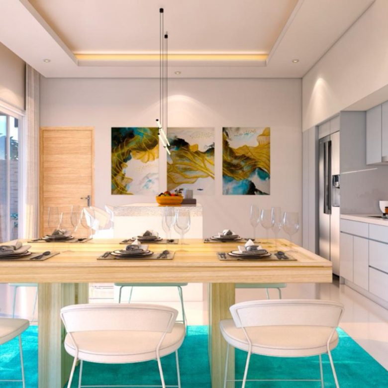 With over 200 sqm of total living space, the villa has been designed for both comfort and investment. The open-plan living, dining, and kitchen area spans nearly 50 sqm, creating a spacious heart of the home that flows directly to the outdoor dining terrace and pool deck. Each of the three bedrooms comes with its own en-suite bathroom, including a 17.3 sqm master suite.