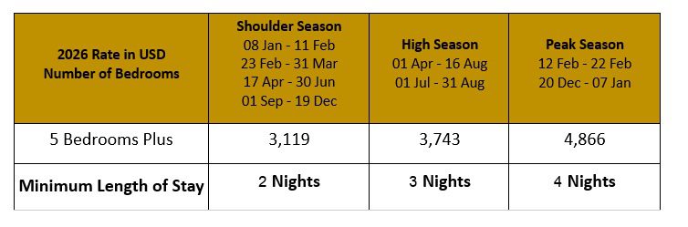 - Complimentary round-trip private airport transfer (maximum two vans)