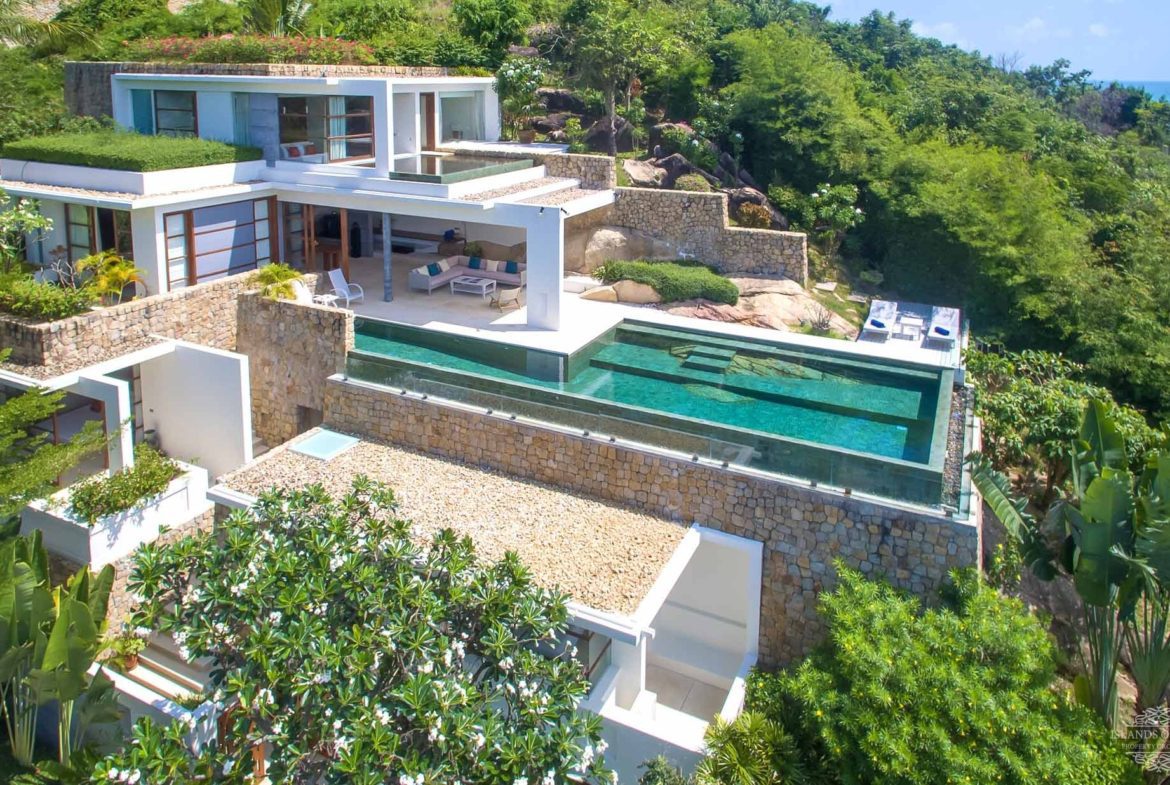 Villa 17 is designed over multiple levels and layered into the natural rock formations rising from the coast; the design of this villa is contemporary with minimalist interior. Offering 4 spacious en-suite bedrooms and rooms that open onto a private terrace. At the heart of the villa is an open-plan living area flanked by a slate-tiled infinity-edged pool for a quick dip or for swimming lengths. The glass walled television lounge, complete with plasma-screen TV and home theatre is attached to the living room for a true cinema experience whilst on holiday. A secluded roof deck and garden area is ideal for sunset cocktails and some of the best views on the estate.
