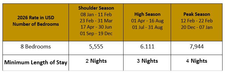 - Complimentary round-trip private airport transfer (maximum two vans)