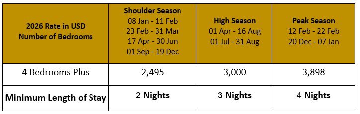 - Dedicated villa manager and villa attendant