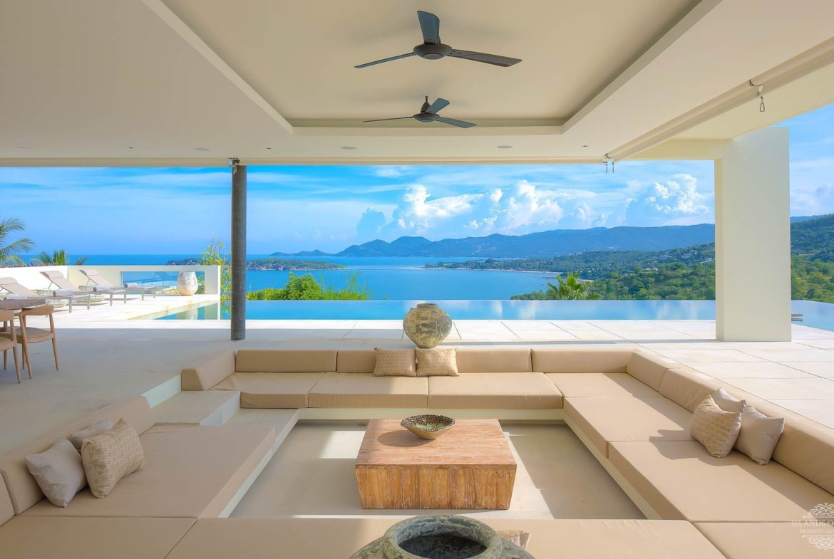 This villa is situated at one of the highest points in the Samujana resort. The beautiful villa enjoys panoramic southern and western views over the Gulf of Thailand. Villa 27 also boasts a unique and large interior garden. With four oversized bedrooms and five bathrooms, there is plenty of space to rent this villa for large groups. The villa also features a private gym, office space and a media room. The infinity edge pool is large enough for swimming, playing and cooling off in, whether you are hosting a large or small gathering – this villa is ideal for all occasions.