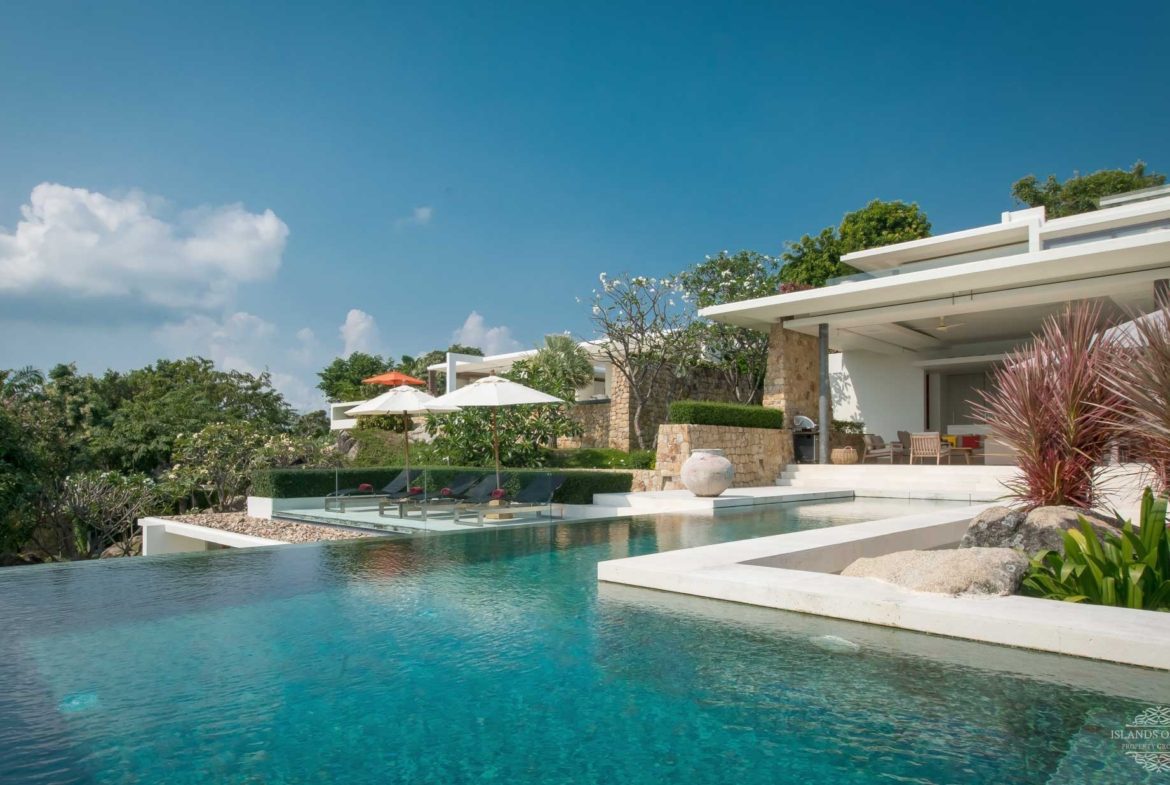 One of the highlights of Villa 6 is that all 5 ensuite bedrooms feature outdoor terraces, day beds and incredible sea views. A bonus children’s room features bunk beds and is adjoined to one of the bedrooms to create a family suite. All bathrooms offer large bathtubs and outdoor showers in some. The open plan kitchen is well equipped and the villa offers a large sunset deck that can be transformed into an entertainment venue. Sweat it out in style in the workout room with a range of equipment or book our Muay Thai champion for a private sparring session. A dedicated spa room is the perfect sanctuary to enjoy a traditional Thai massage, yoga session or couple’s retreat. Relax in the television lounge offering a 42-inch plasma screen and surround sound system that extends to the living area or lounge around the infinity edge pool. Villa 6 has it all.