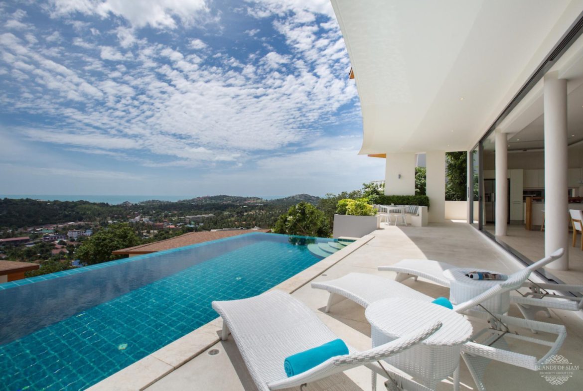 This luxurious 3-bedroom villa with private pool, located in Plai Laem has stunning panoramic views overlooking the Gulf of Thailand.