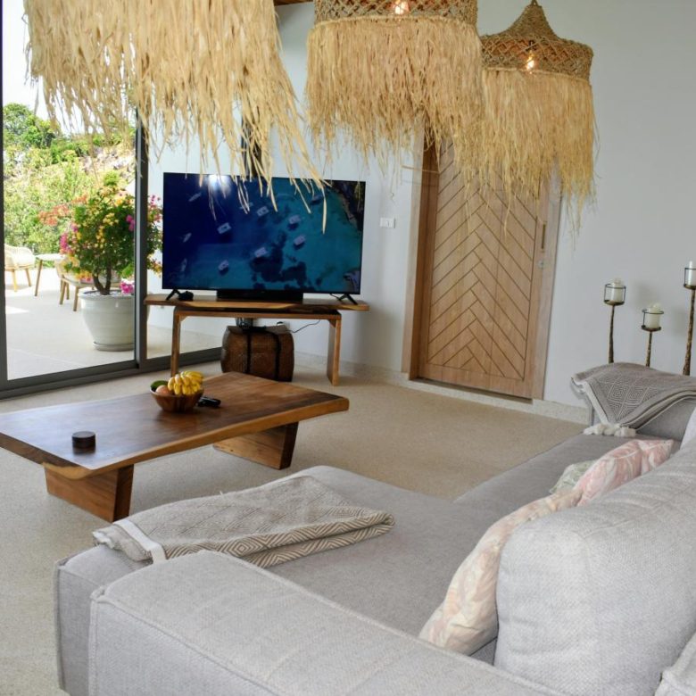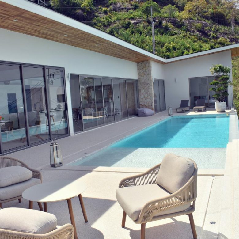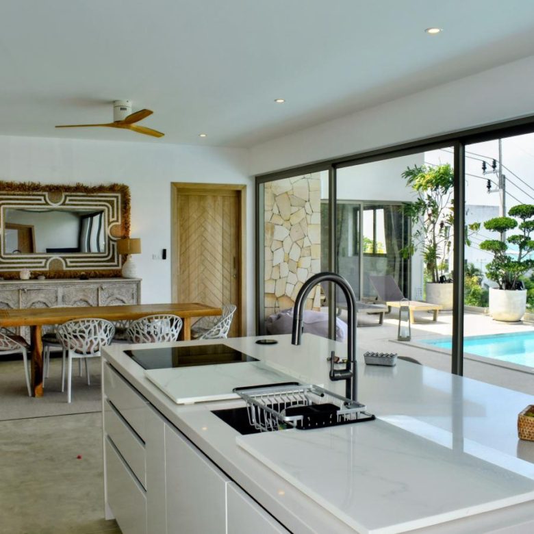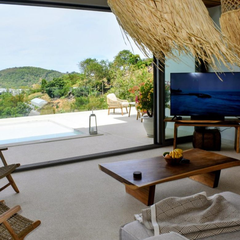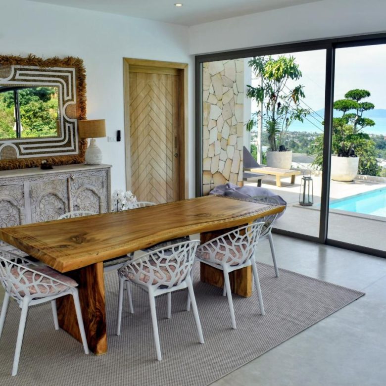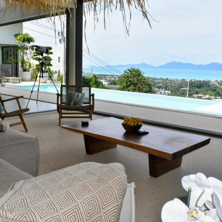 Nestled in the peaceful heights of Bo Phut Hills, this newly completed 3-bedroom, 3-bathroom villa offers 294 sqm of refined living space with sweeping views of the sea and surrounding greenery. Designed by a renowned builder celebrated for exceptional quality and finish, the home invites effortless island living through its open-plan layout, generous terrace, and private pool.
