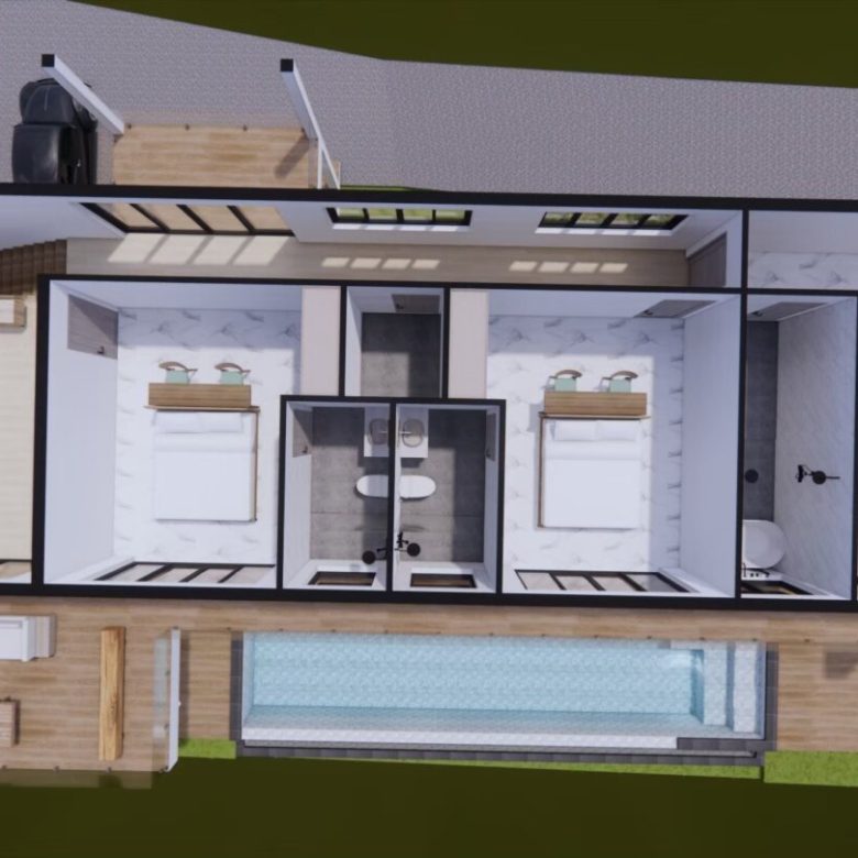 includes a gourmet kitchen, a stylish living area, and direct access to the pool and terrace. Each bedroom is designed to be a peaceful sanctuary, ensuring elegance throughout.