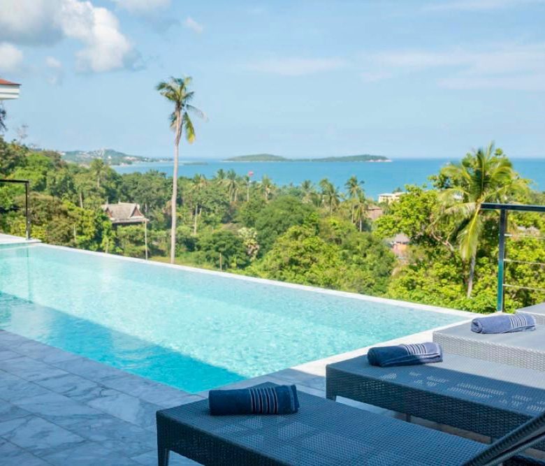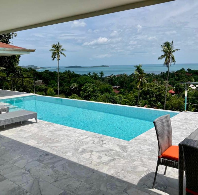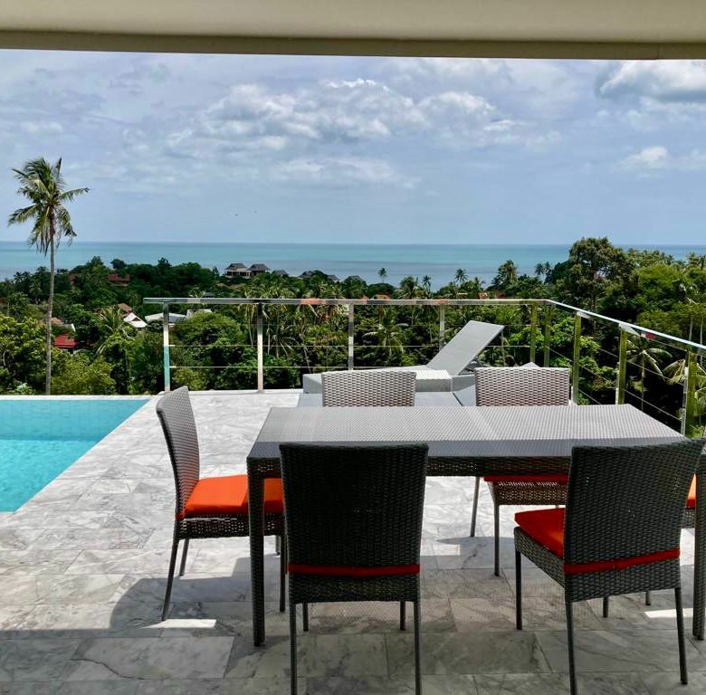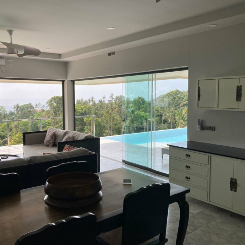 This is a contemporary home featuring tropical elements to give guests a sanctuary overlooking of the Gulf of Thailand. With this prime location a 5 minute drive allows you to explore the town with ease and even head to nearby islands. Chaweng Noi sea view showing the contour of white sandy Chaweng Beach and surrounding islands. The three massive bedroom on a single level could be met with privacy in separatation from the main living room areas. The villa offers an infinity pool, beautiful landscaped gardens, splendid vistas of the bluest seas and tropical flora, and more importantly comfortable living all with in a gated community.