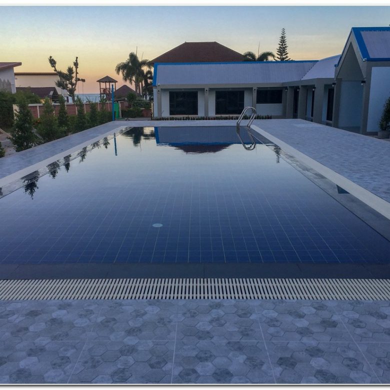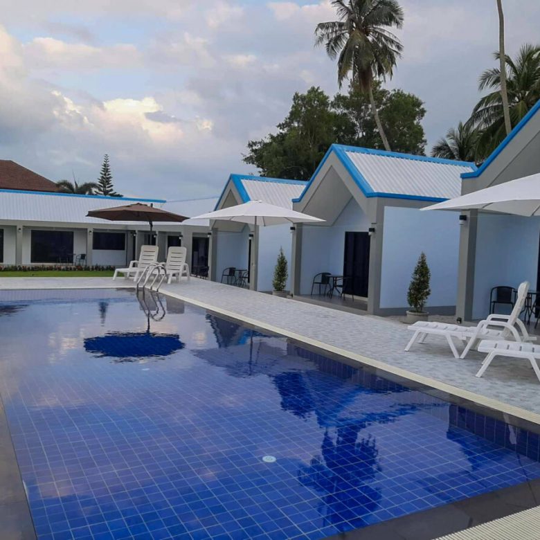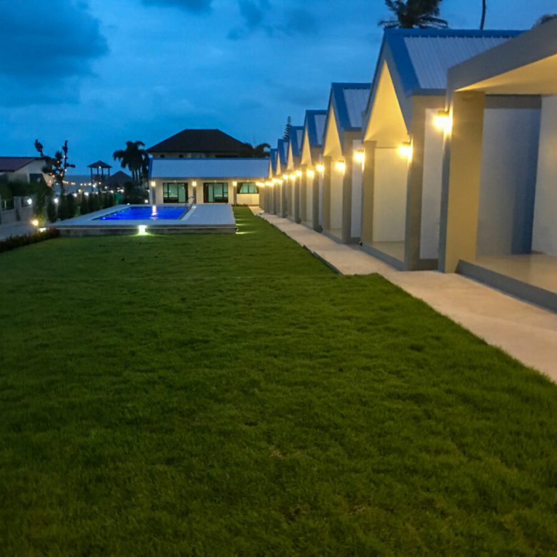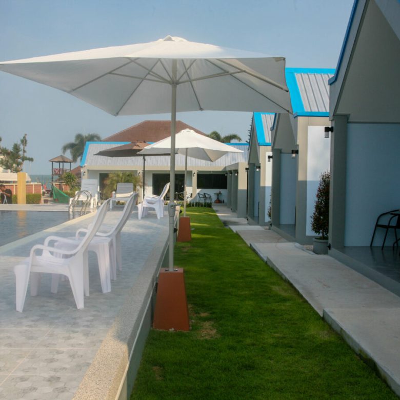 Resort and villa on the beach of Khanom. This resort with villa is located right on the beautiful beach of Khanom. It is in a prime location and just 5 minutes to the town of Kahnom. The resort has 13 apartments and 5 bungalows. This includes a house with 3 shops on the street.
