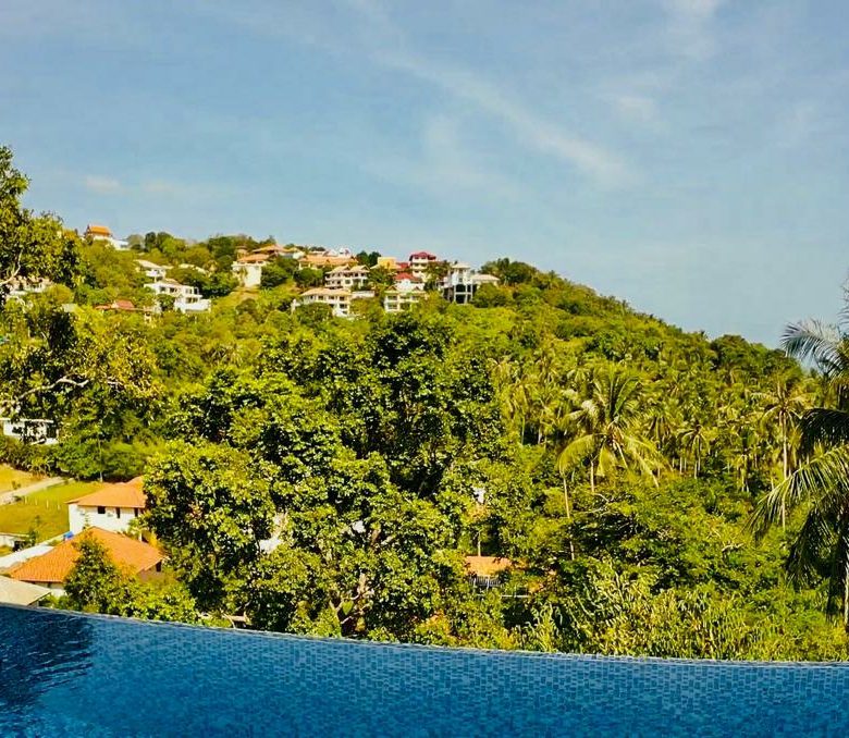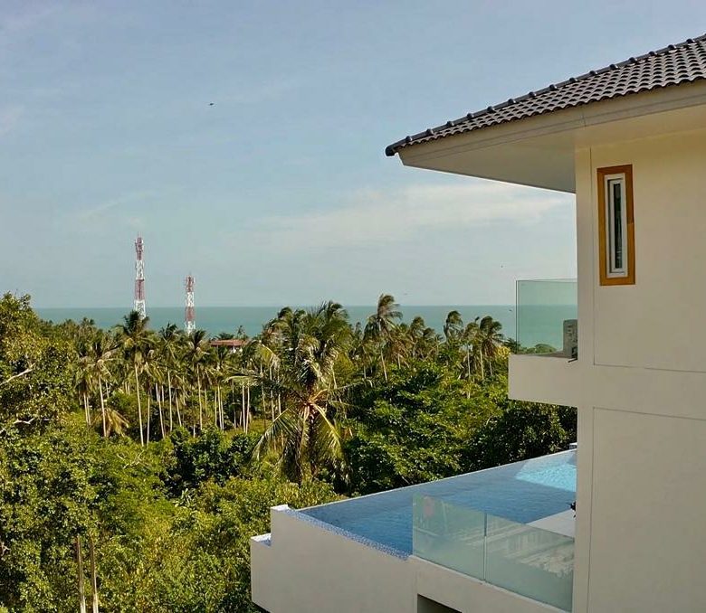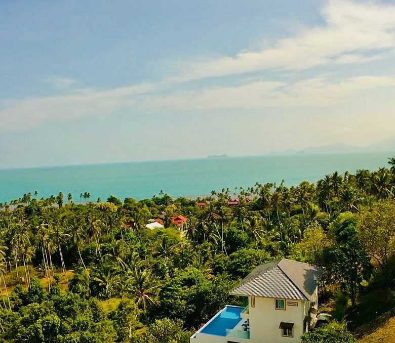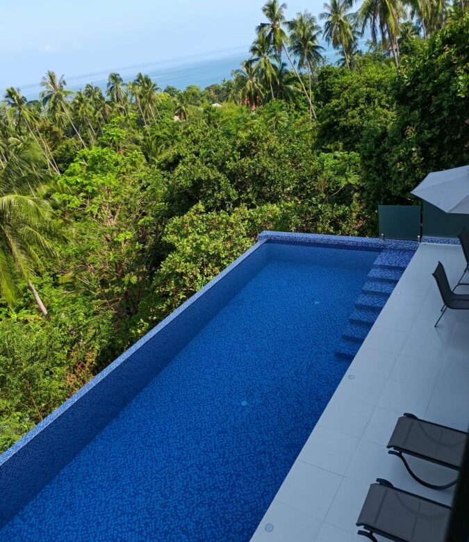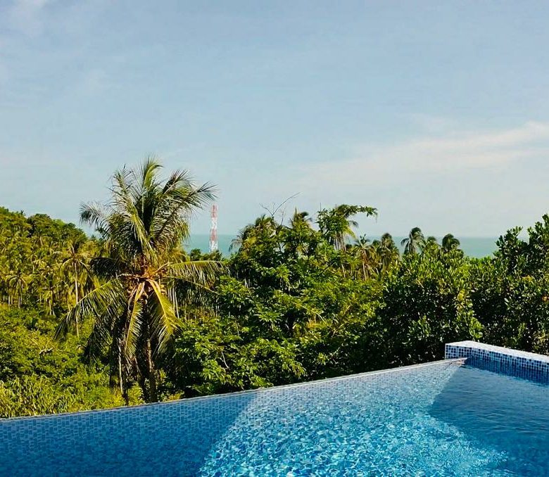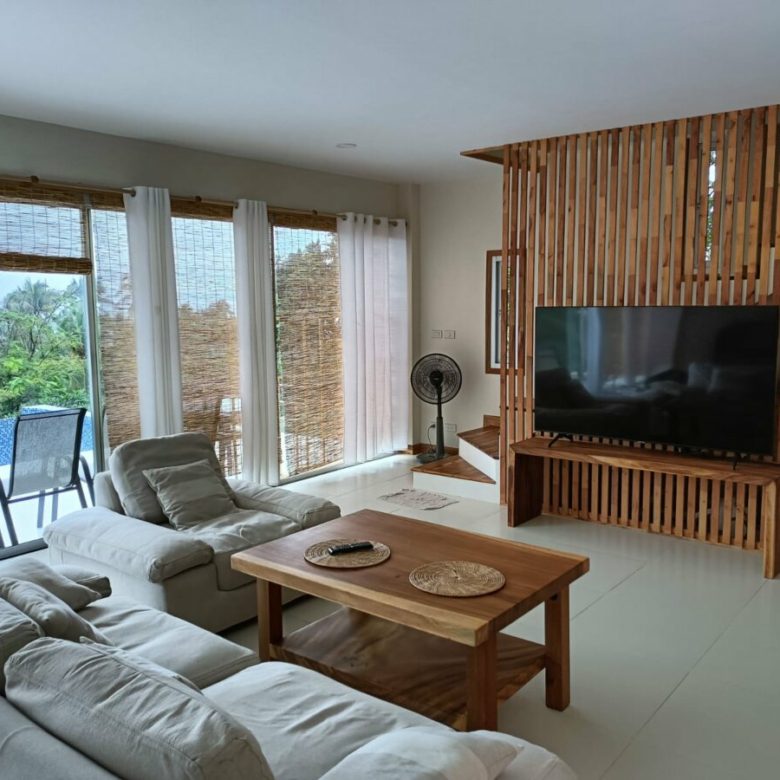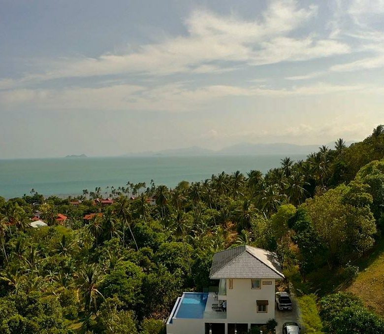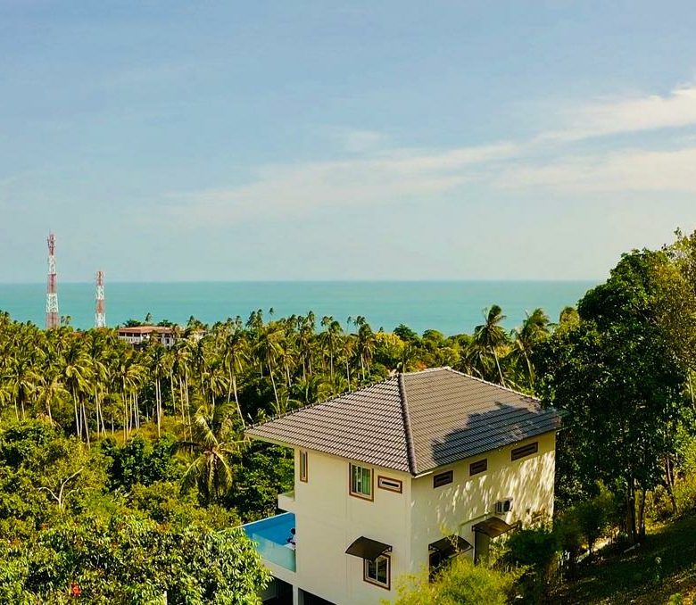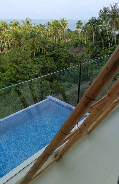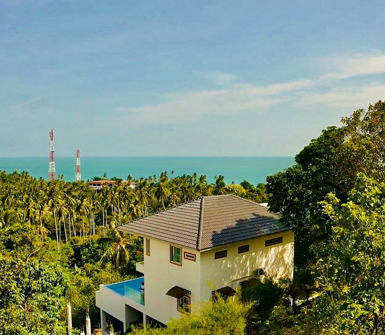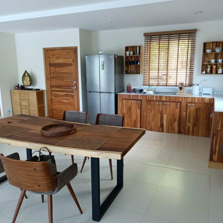 Ideal for nature lovers, the relatively new 2 Bedroom pool villa It has an open kitchen that connects to the living room with direct views to the pool. The open spaces are on the first floor as well as the guest bathroom. The slack as well as associated bathrooms are on the 2 floors. Large white tiles extend along the bottom. Kitchen front, doors, and window frames such as stair beams are made of beautiful local Thai wood. The House located on a beautiful palm laden hillside in Mae Nam estate, is very quiet and magnificently surrounded by greenery. The development is only 2 minutes from the ring road. There is a local store at the turn into the property and the 7/11 is 3 minutes away. The beautiful Mae Nam Beach is less than 10 minutes away.