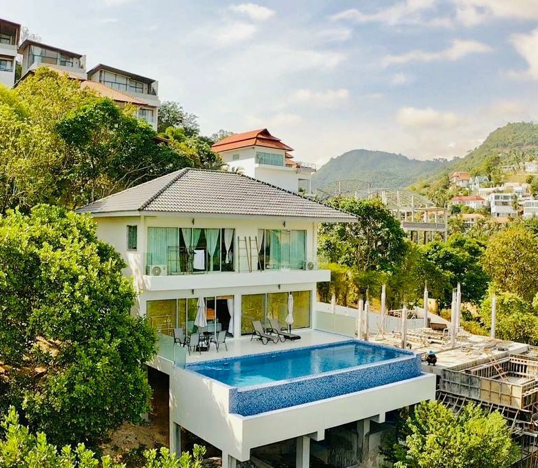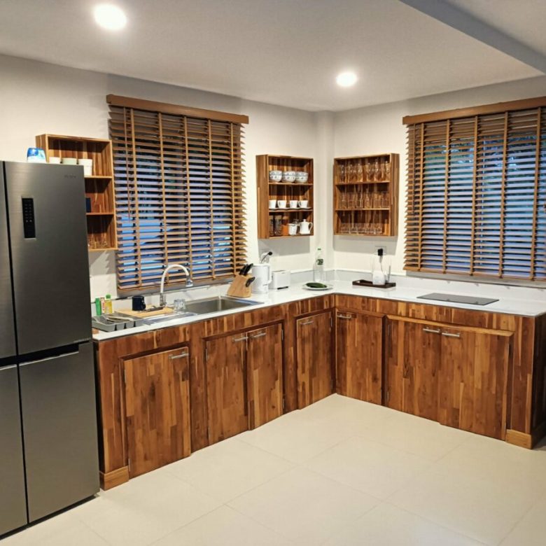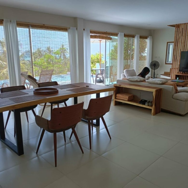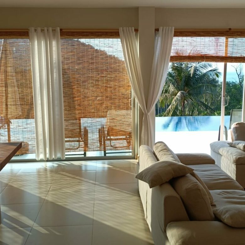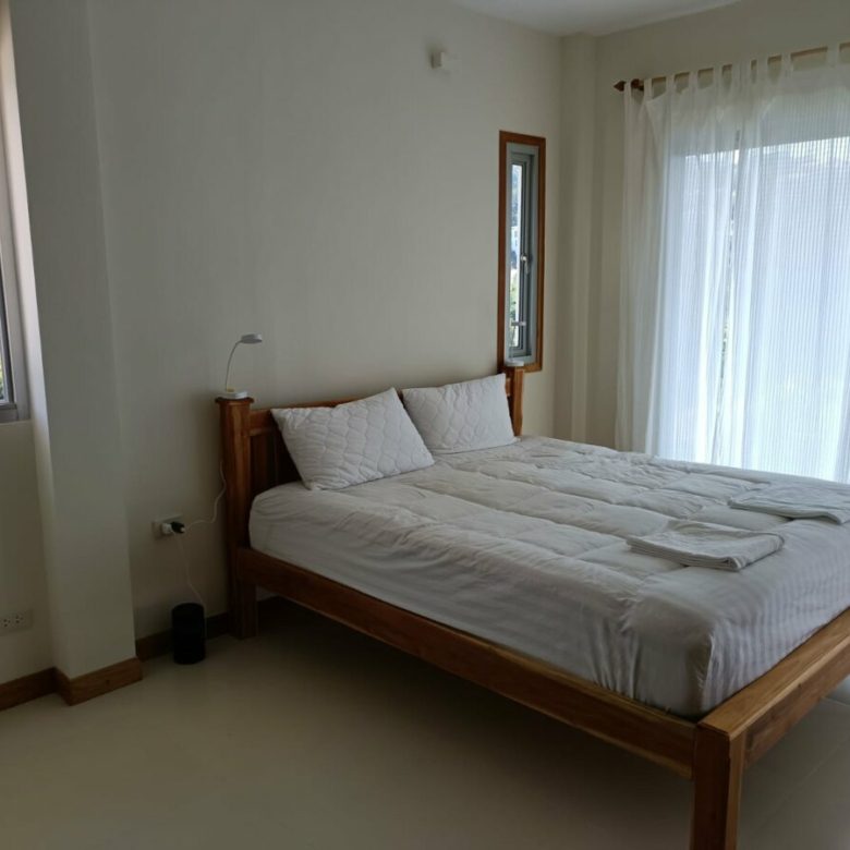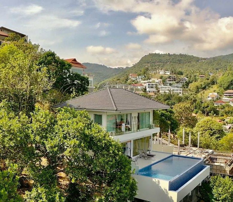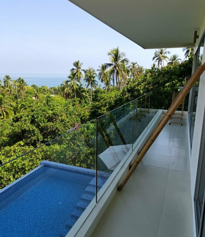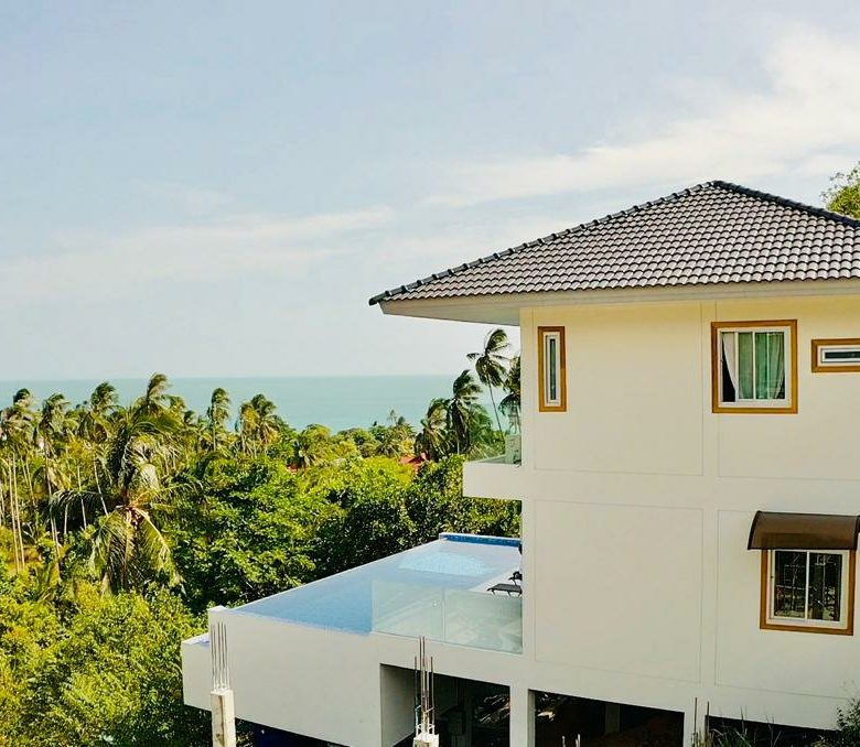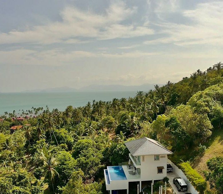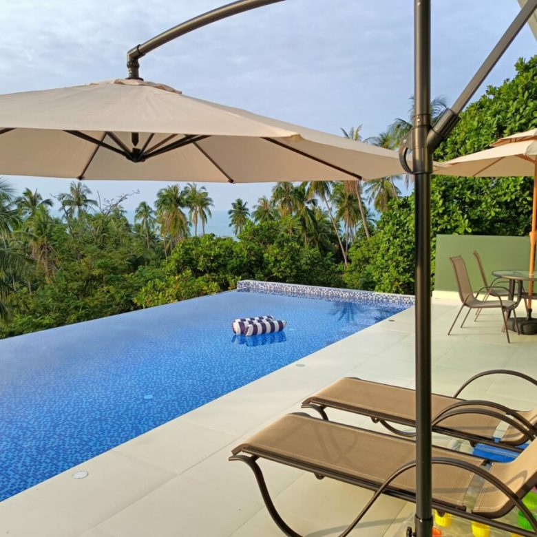 Ideal for nature lovers, the relatively new 2 Bedroom pool villa It has an open kitchen that connects to the living room with direct views to the pool. The open spaces are on the first floor as well as the guest bathroom. The slack as well as associated bathrooms are on the 2 floors. Large white tiles extend along the bottom. Kitchen front, doors, and window frames such as stair beams are made of beautiful local Thai wood. The House located on a beautiful palm laden hillside in Mae Nam estate, is very quiet and magnificently surrounded by greenery. The development is only 2 minutes from the ring road. There is a local store at the turn into the property and the 7/11 is 3 minutes away. The beautiful Mae Nam Beach is less than 10 minutes away.