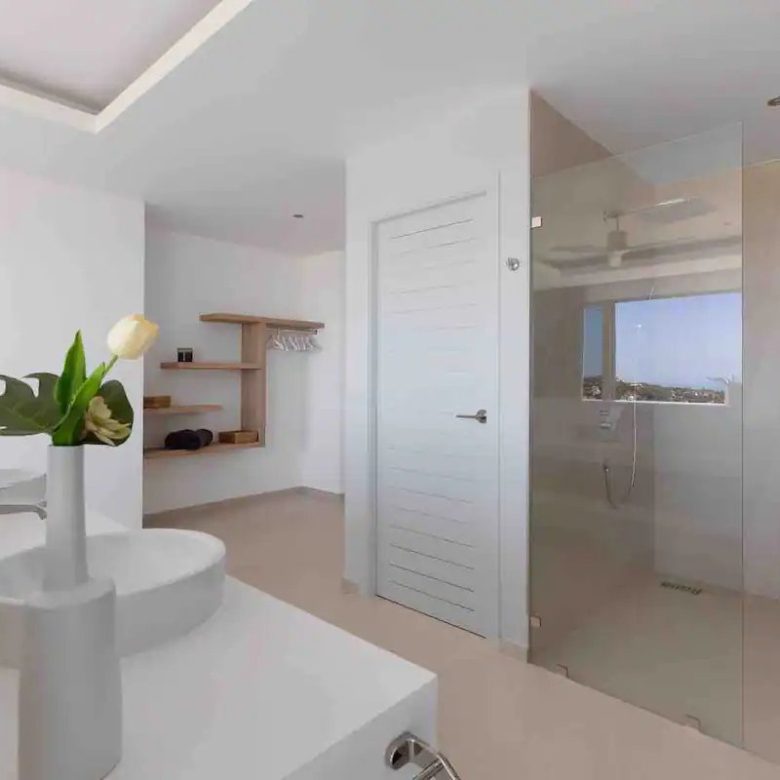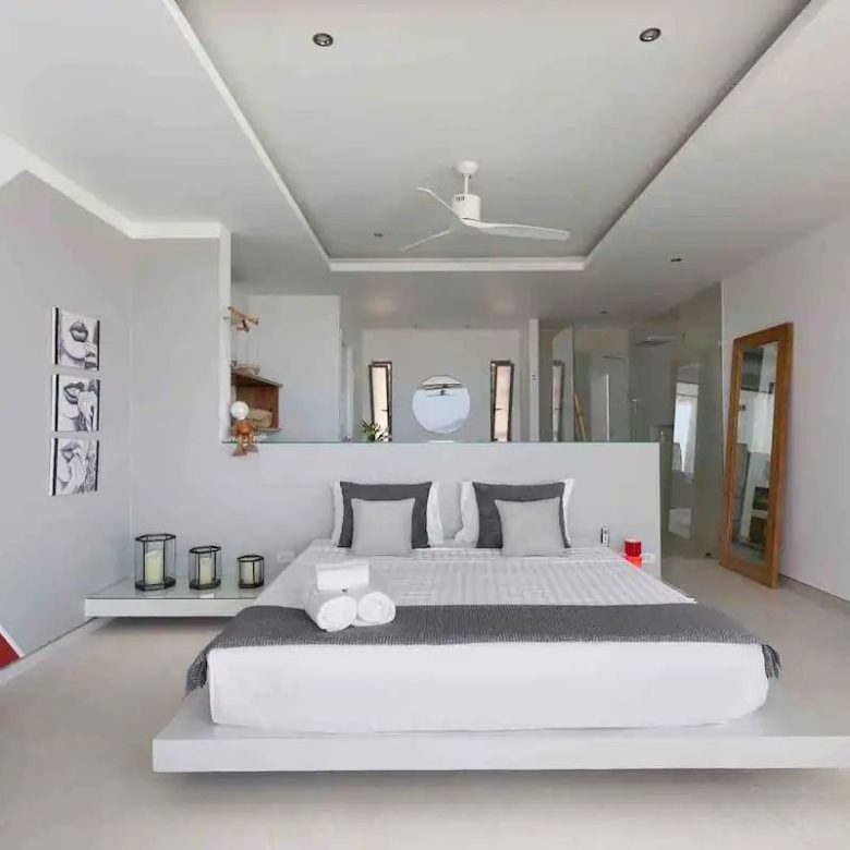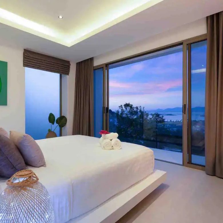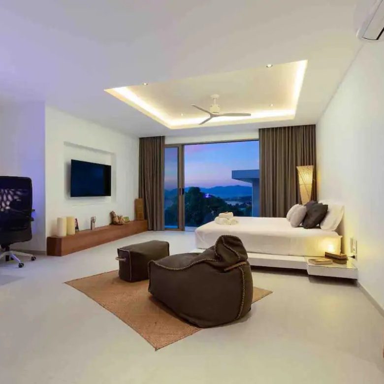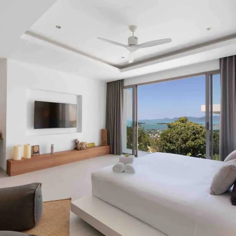 Welcome to the villa where elegance meets tranquility. Discover the height of luxury in our four air-conditioned rooms, each refined and offering panoramic views of the sea and the enchanting island of Koh Phangan. Each room is a sanctuary with lavish bathrooms featuring spacious sinks, walk-in showers and individual toilets, all equipped with generous storage spaces. Immerse yourself in the indulgence of the king-size beds present in each room, guaranteeing royal nights.