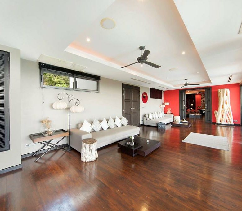 This sprawling 6 bedroomed villa is adjacent to Samuiâs only 18 hole PGA Asia circuit golf course, Santiburi. Set on the foothill with a gentle approaching road and having the thick tropical hillside as a backdrop and the golf course upper holes as the left hand side neighbor , the villa is built on three distinct floors.