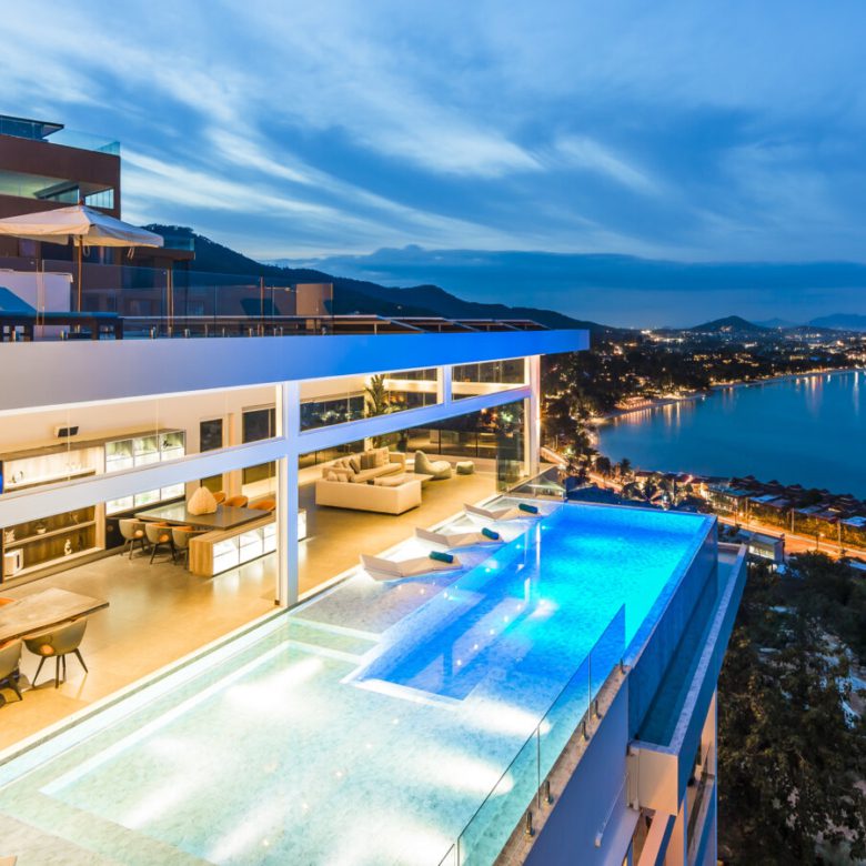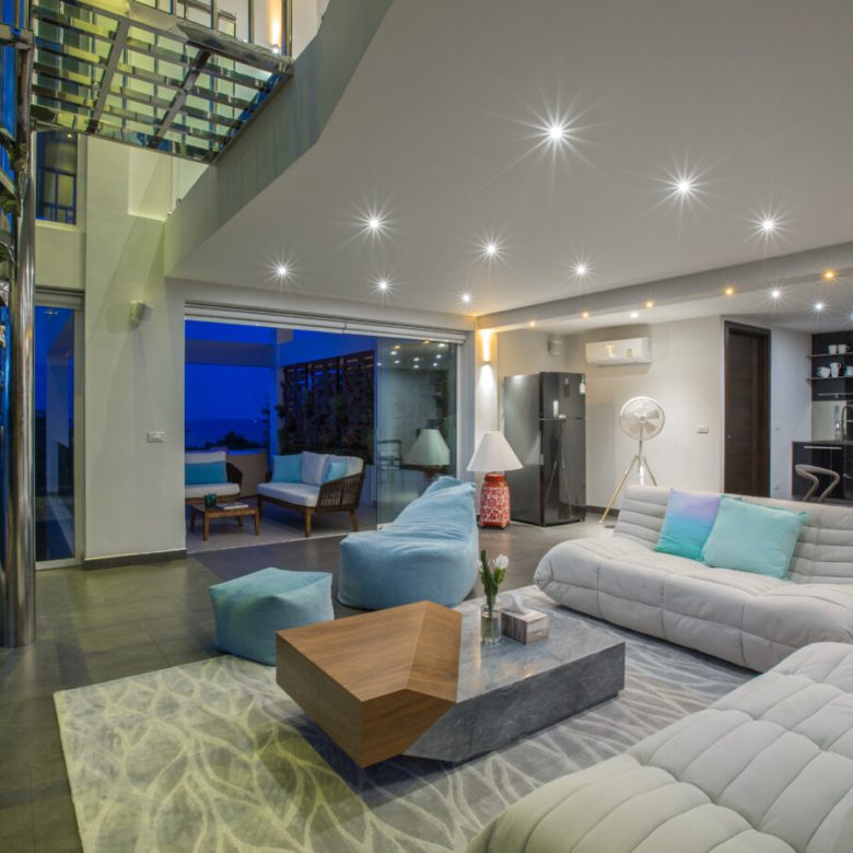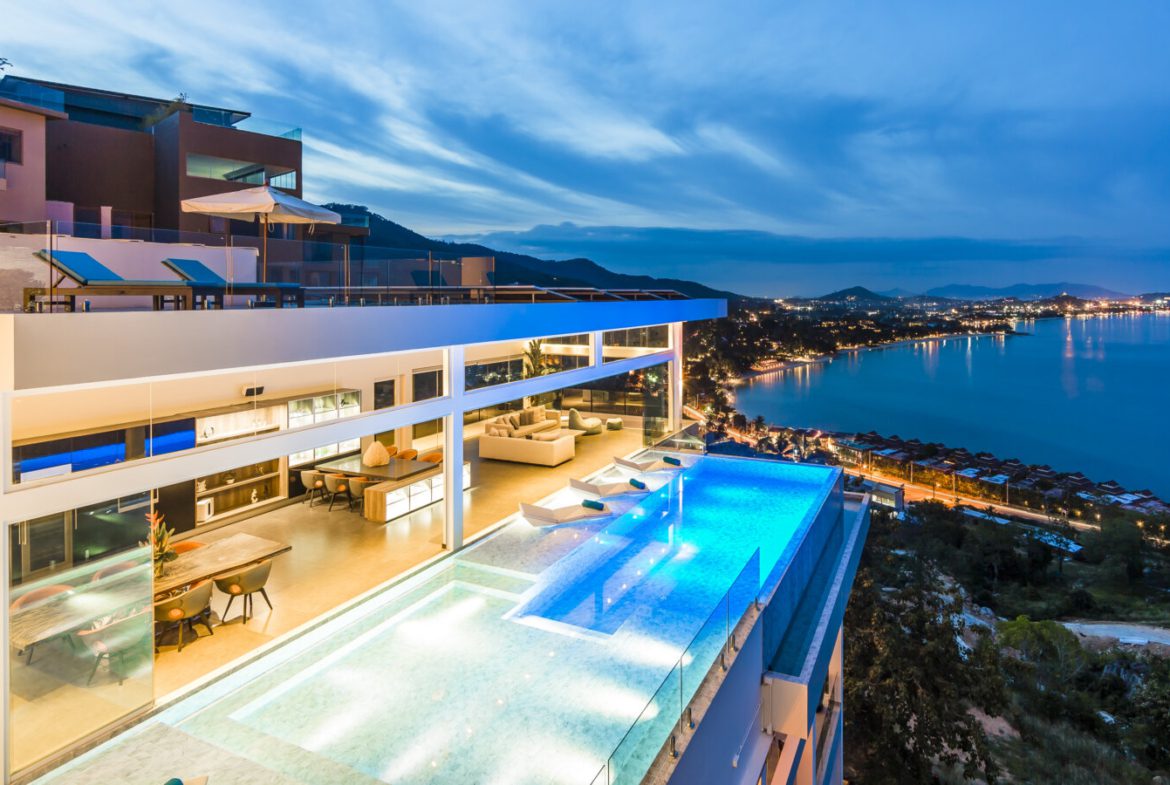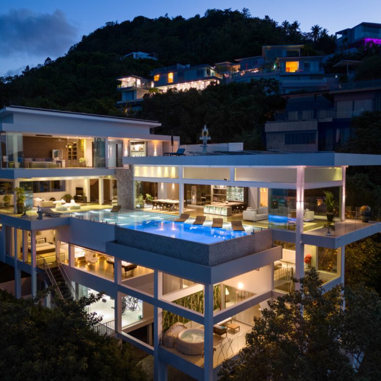 This breathtaking villa is located in the Chaweng Noi area and offers the ultimate eagleâs nest with front row seats to the view of the best beach on the exclusive island of Koh Samui .