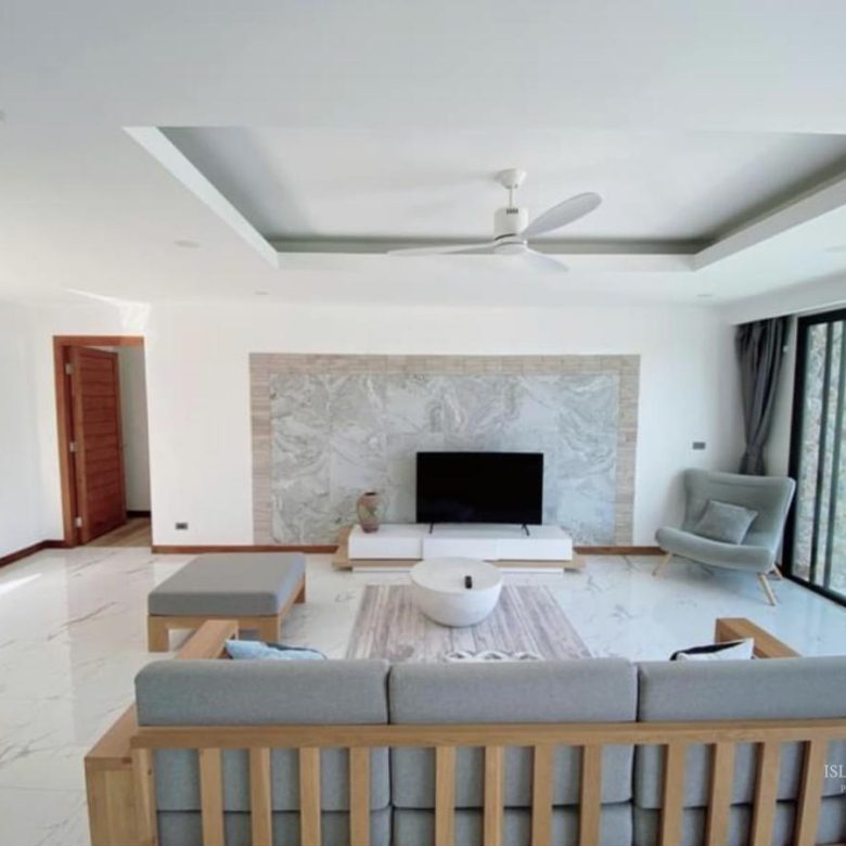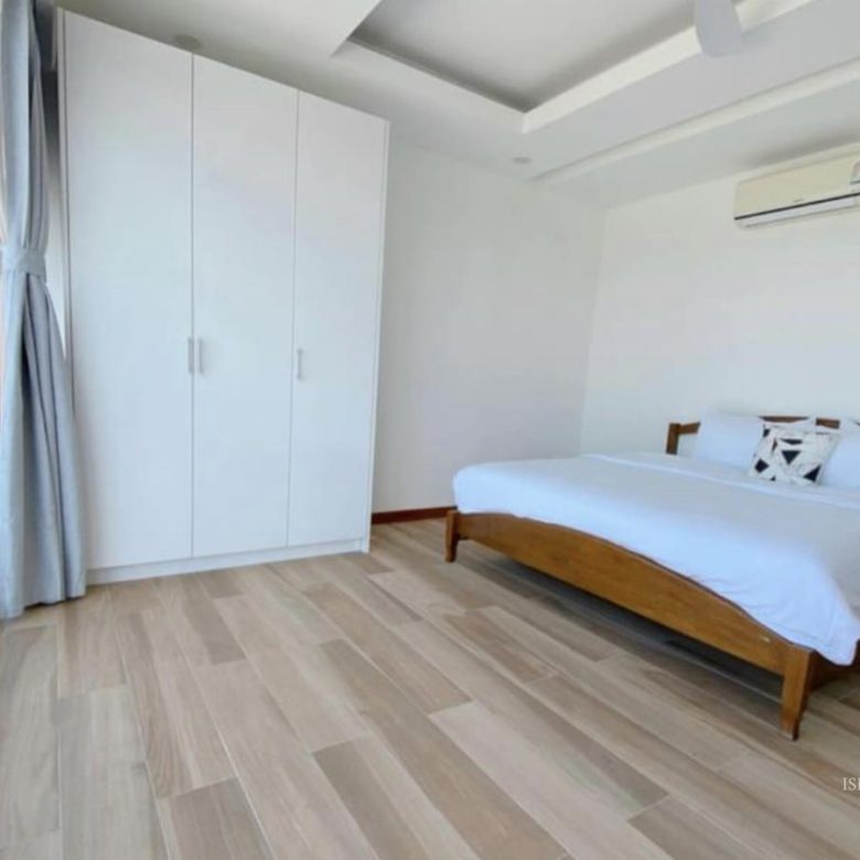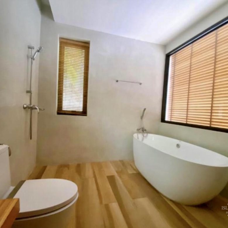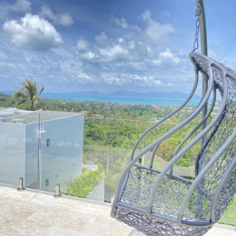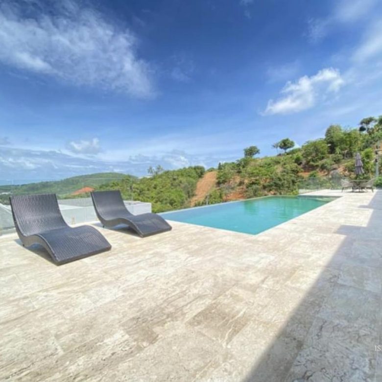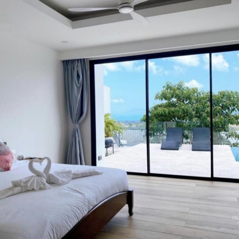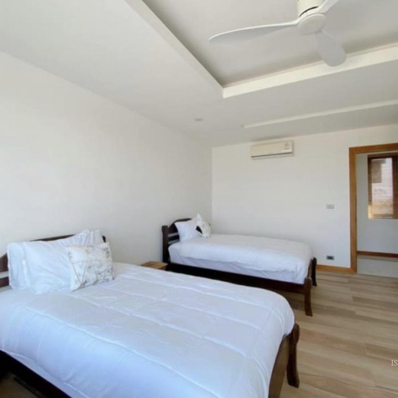 Three-bedroom pool villa with an amazing view located in Bophut hills that is only a few minutes away from Fishermanâs village, supermarkets, and restaurants. The villa features an open-plan living area, a fully equipped kitchen, and a dining area overlooking the sea view. Two rooms have double beds while another room has two single beds. The master bedroom has a bathtub. The villa has its own parking area and high speed internet all throughout the villa.
