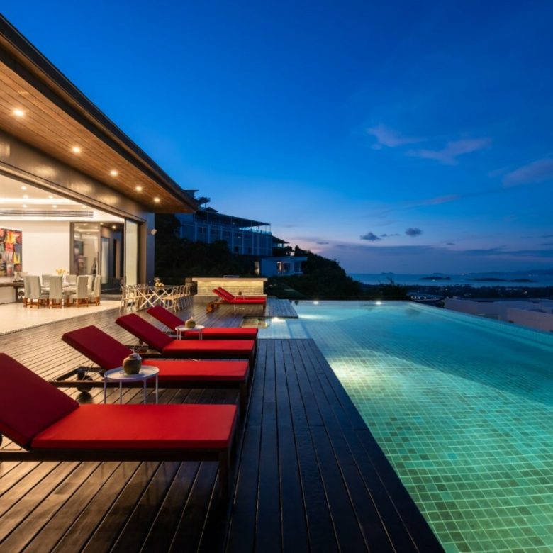 This 700 square meter ,5 bedroom home is quietly tucked into a landscaped private lane in Plaileam and is nestled on a 3477 sqm plot .