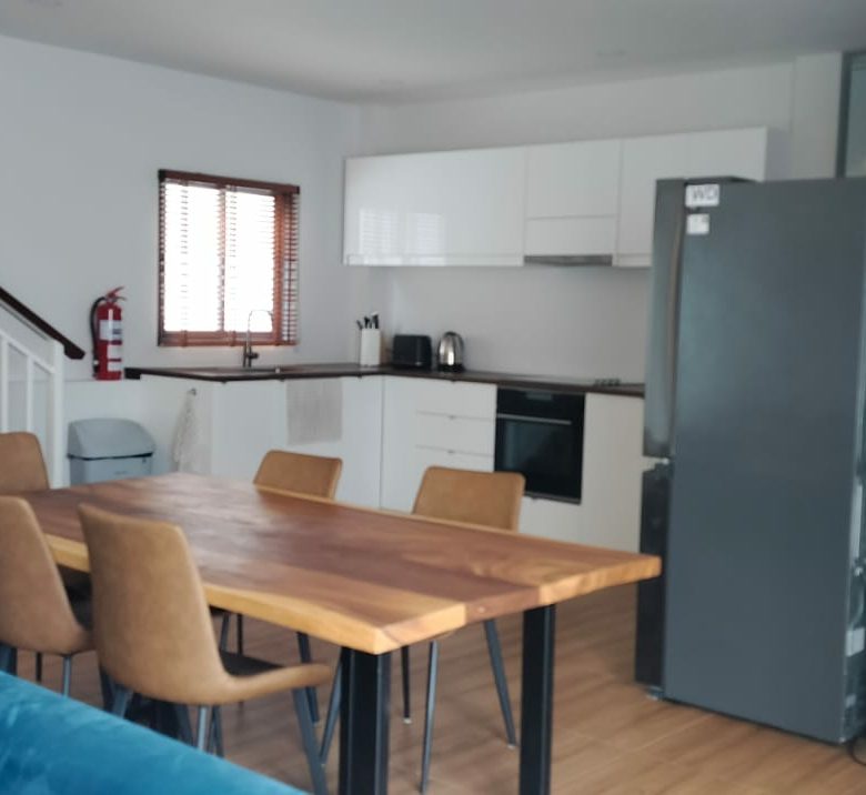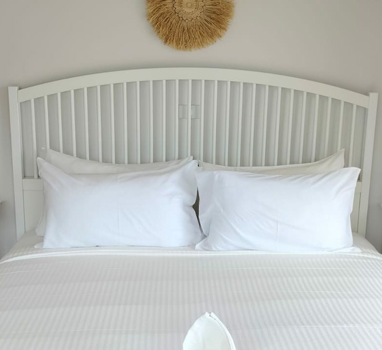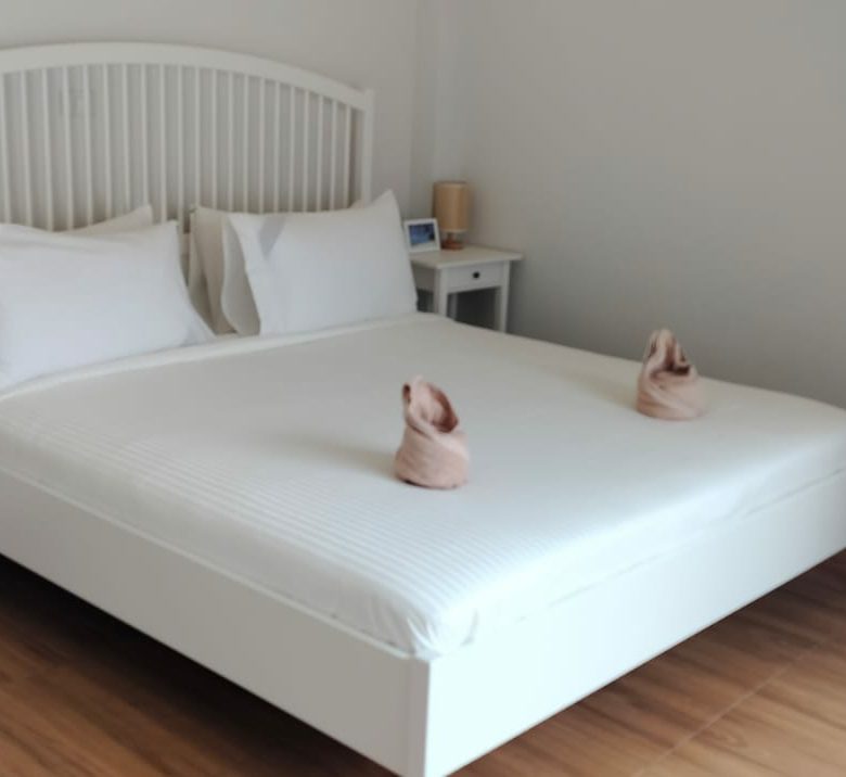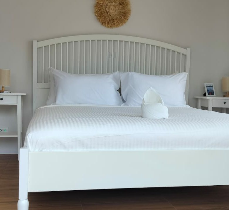Each villa features two bedrooms, two bathrooms, a guest toilet, a fully equipped western kitchen, a dining area, and a large open plan living area. The master bedroom has an en-suite bathroom and a balcony, while the second bedroom has a private balcony. Both bedrooms have air-conditioning and ample closet space.