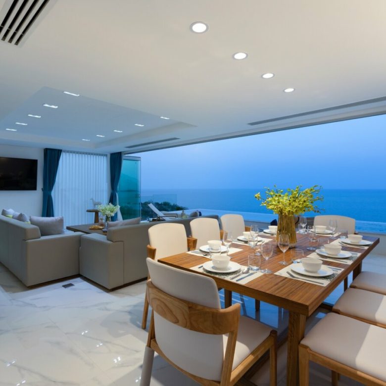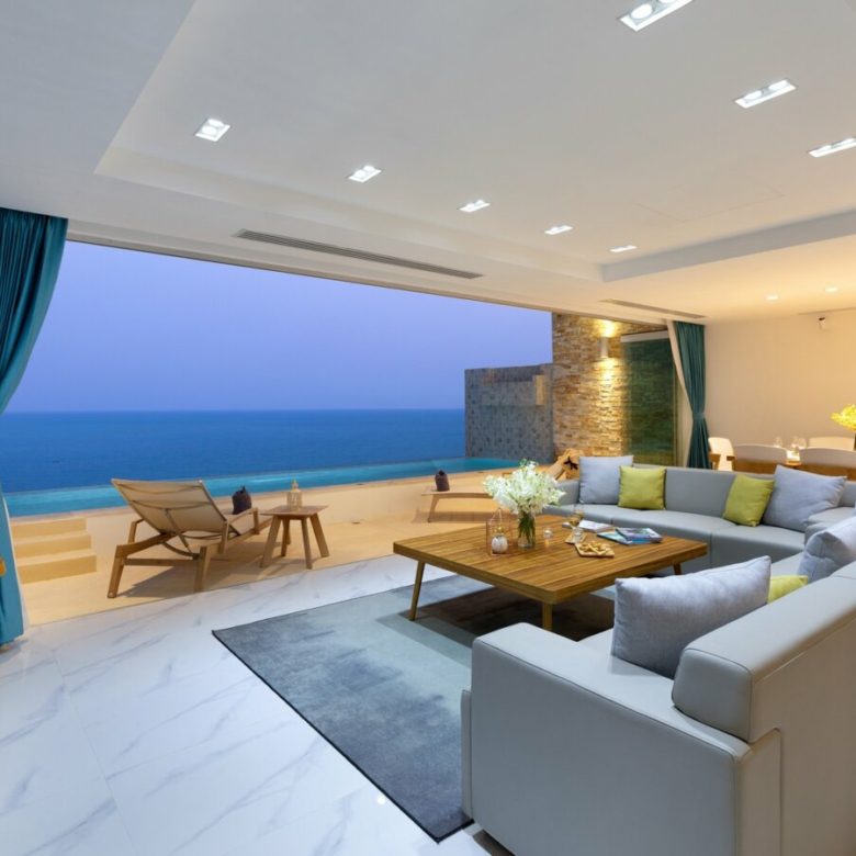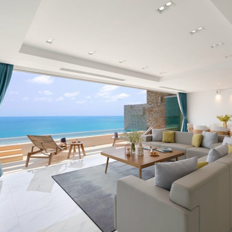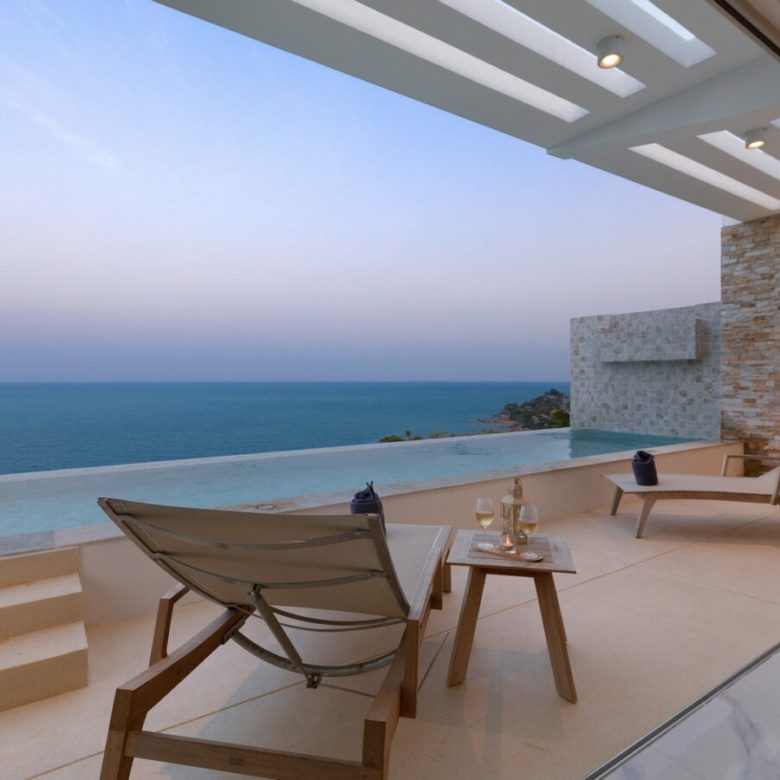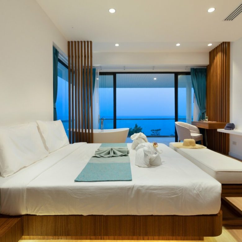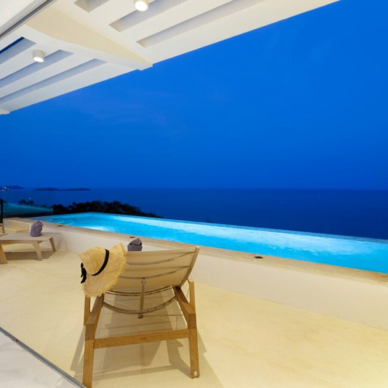 This modern beautiful semi-detached villa is located in the wave development and is built on two levels and enjoys one of the most stunning views over the gulf of Thailand and is located close to coral cove beach on the ridge that separates Chaweng beach from Lamai .