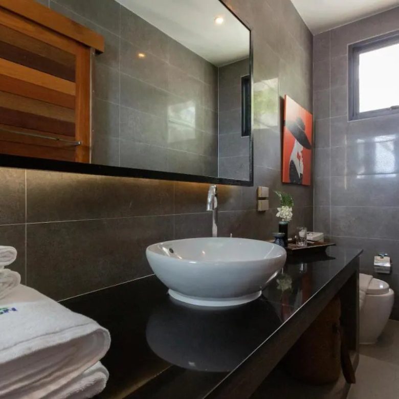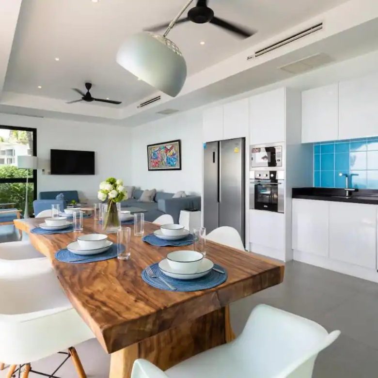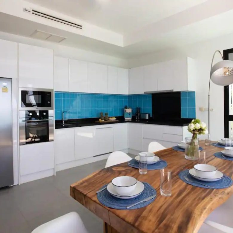 The villa boasts a stylish design with a very modern and good quality interior, providing a comfortable and elegant living space for guests.
