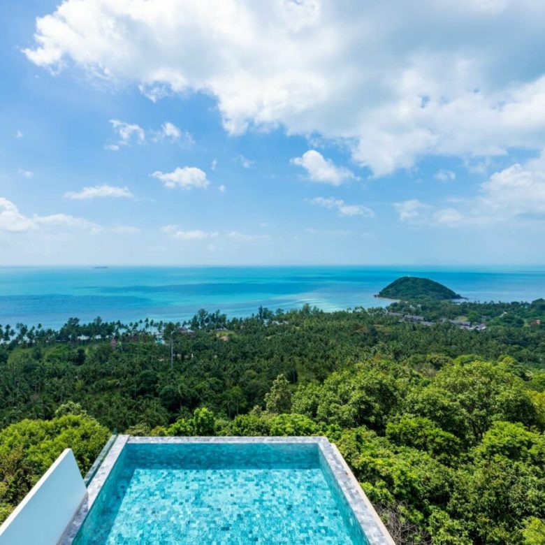 Located on the highly desirable, scenic and breathtaking lush LaemNoi Hill shared by the Four Seasons Resort Koh Samui , The Estates Luxury Villa development within the Four Seasons Estate and several other luxury homes , this villa enjoys some of the most spectacular sunset vistas and views over the iconic Bang Makham beach dunes , the historic port of Nathon , the Angthong National Marine Park and the cliffs and mountains of Khanom on the mainland.